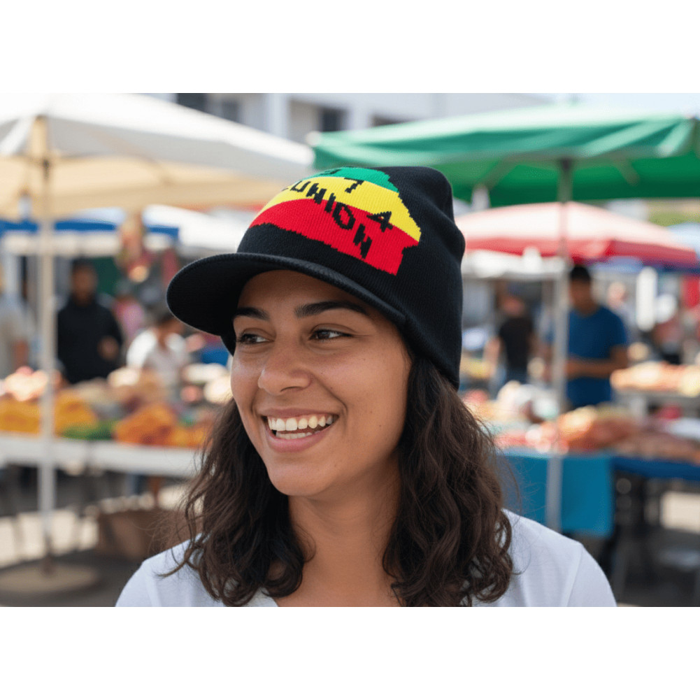 Allure fashion et colorée, achetez un bonnet La Réunion noire confectionné en laine acrylique douce et confortable pour le porter sans sensations de picotements. Côté mode, ce joli bonnet visière réunionnais pas cher et tendance présente le motif de l'ile Intense aux coloris rasta vert jaune et rouge avec le célèbre 974 de code postal. Ce joli bonnet casquette ile de la Réunion homme et femme vous garantira une allure efficace et assumée pour un design cool.