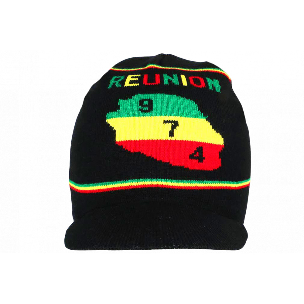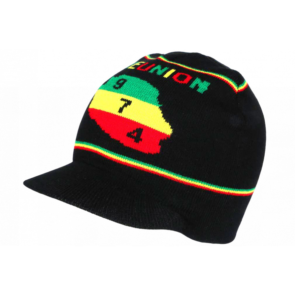 Ambiance fashion et colorée, achetez en cligne un bonnet La Réunion noire réalisé en laine acrylique douce et confortable pour le porter sans sensations de démangeaisons. Côté style, ce beau bonnet visière réunionnais pas cher et tendance offre le motif de l'ile Intense aux coloris rasta vert jaune et rouge avec le célèbre 974 du code postal. Ce bonnet casquette ile de la Réunion homme et femme vous apportera une mode efficace et assumée pour un design cool.