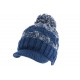 Fashion et chaud, trouver un bonnet casquette pas cher de marque Nyls Creation modèle Galyx Blue alliance d'un bonnet revers bleu et d'une visière tendance façon casquette. Ce bonnet visière homme et femme affiche un style travaillé avec un design en bandes bleues et grises chinées bleu et un pompon chiné. Cette casquette tricot est doublée polaire plush bleu très douce et confort. Tricoté façon grosses mailles fashion, ce bonnet pompon pas cher est au look tendance pour un hiver mode; chaud, il vous offrira une allure cool et relax à la silhouette hivernale.