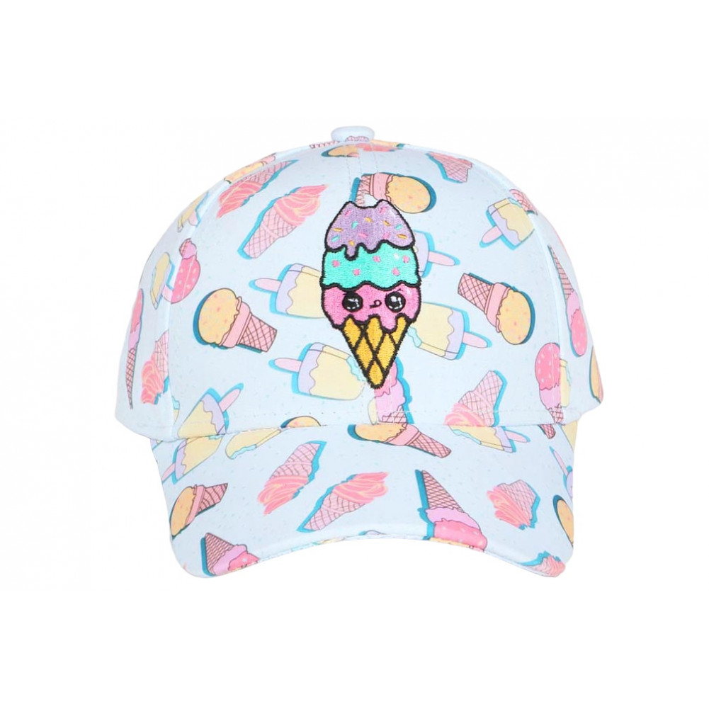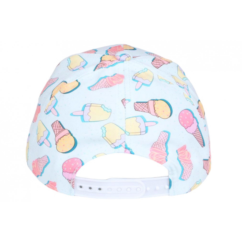 Casquette enfant glaces bleu pastel pour fille et garçon de 6 à 12 ans. Sa fermeture réglable assure un ajustement parfait. La visière incurvée protège du soleil, tandis que ses motifs gourmands apportent un style estival frais et ludique, idéal pour les vacances, sorties et activités.