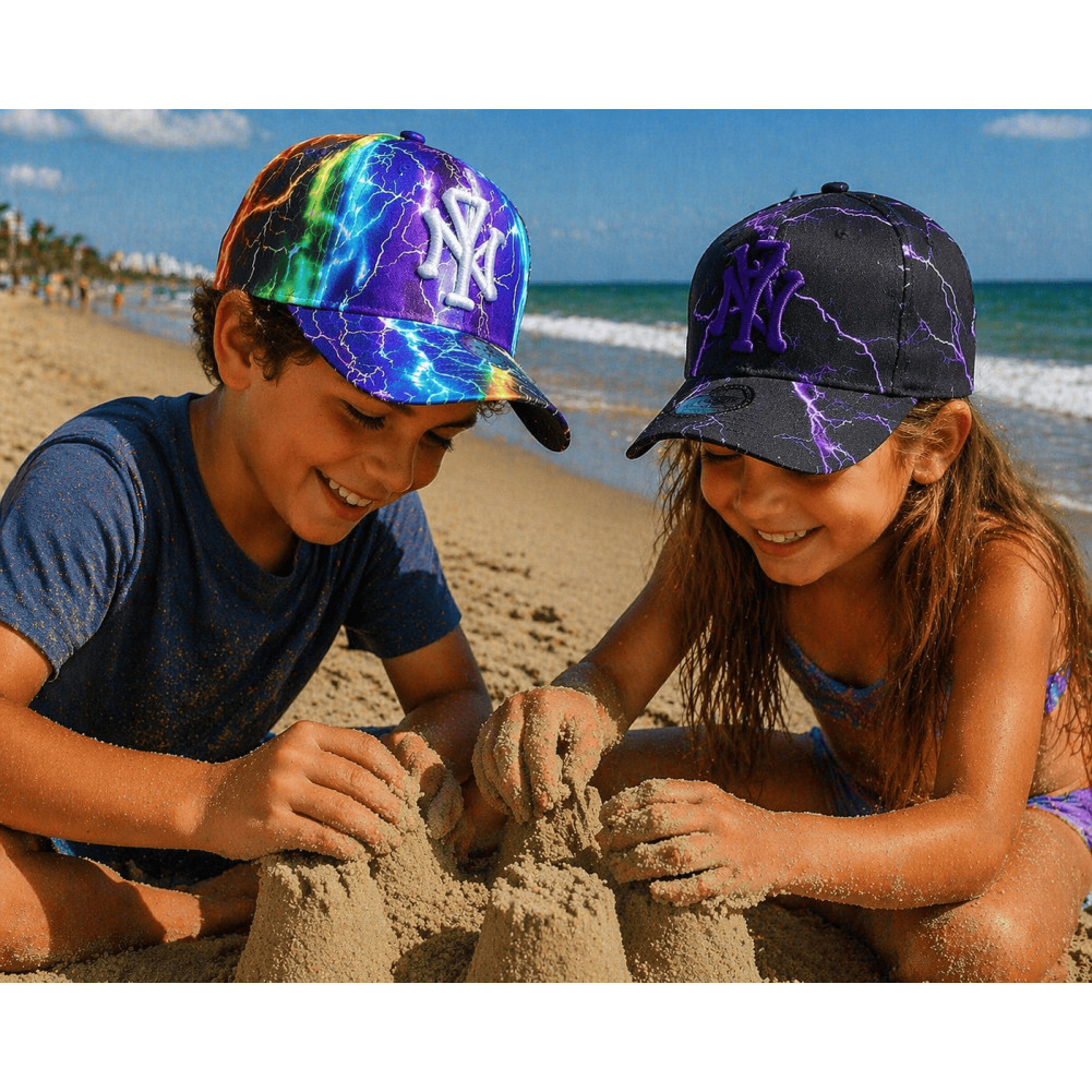 Cette casquette NY fille garçon 7-12 ans se distingue par son design puissant inspiré de la foudre. Son fond noir profond associé à des éclairs violets lumineux crée un rendu visuel très recherché dans l’univers streetwear enfant. Ce style dynamique séduit aussi bien les garçons que les filles à la recherche d’une casquette tendance enfant.