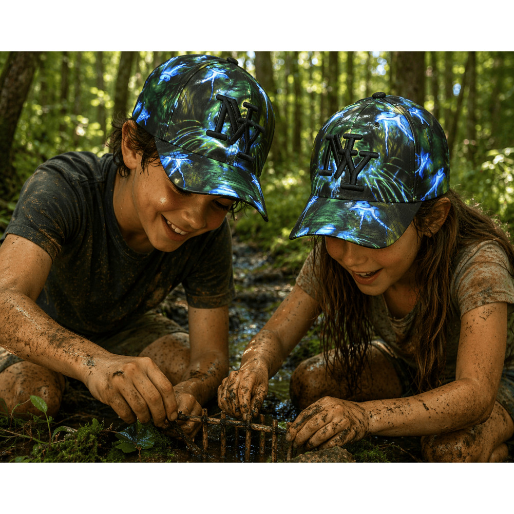 Le mélange de bleu profond, vert électrique et noir crée une ambiance graphique puissante très recherchée dans la mode urbaine enfant. Le logo NY brodé en relief noir apporte une finition premium et renforce l’identité de cette casquette NY stylée enfant.