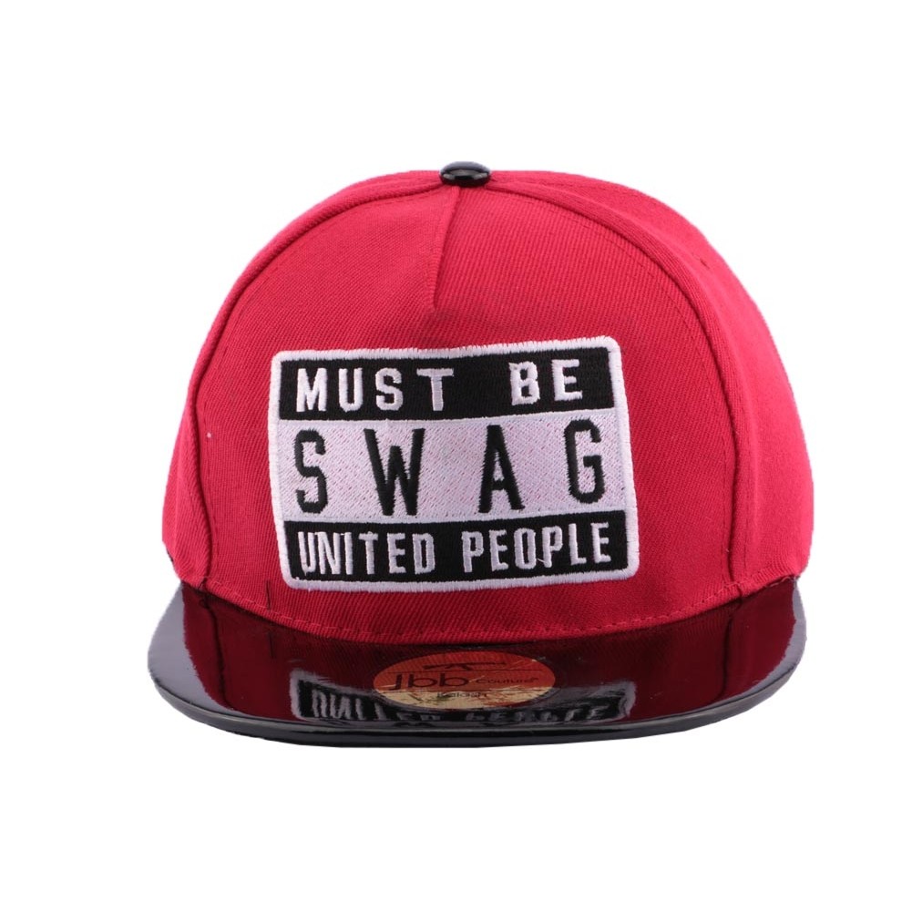 Casquette de la marque Streetwear JBB Couture forme snapback, cette casquette est rouge avec une visère brillante noire, sur le devant on trouve écrit Must be Swag. A l'arrière il y à l'attache pour la taille. enfant de 10 ans à 16 ans