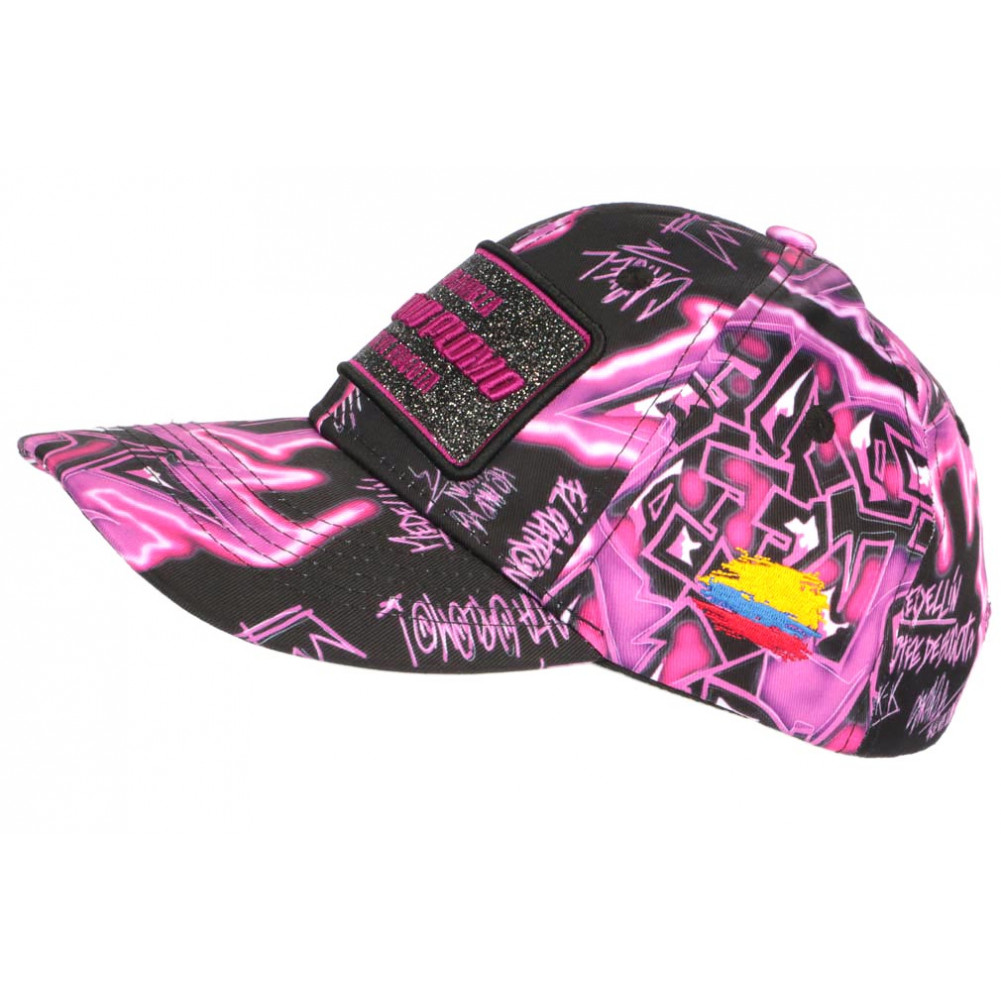 Vente casquette baseball Plata o Plomo violette création SKR au design streetwear original fait de coeurs et couronnes violets esprit éclairs électriques dans un fond noir. Cette jolie casquette Colombia homme et femme affiche un gros patch Plata o Plomo violet avec broderie en relief 3D chic dans un fond lumineux recouvert de paillettes strass argent et noir lumineux et fantaisie. Lookée streetwear sans concession et moderne dans des coloris chauds et contrastés, cette casquette Pablo violette rappelle la Colombie avec son print efficace mode bad boys, le drapeau colombien est brodé sur le côté gauche. Une seconde griffe de la marque SKR violette sur strass est placée sur l'arrière. Cette casquette plata violette pas cher se règle simplement par une ceinture de même tissu avec sa boucle métallique argent.