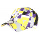 Achat Casquette baseball jaune et violette design en motifs patchwork arlequin blancs et gris référence Yellow Arlek collection Hip Hop Honour, casquette NY femme et homme pas cher allure originale et bariolée, visière baseball fashion, broderie New York blanche en 3D, sticker NY Original, taille réglable.