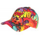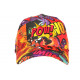 Mode pop city fantaisie, vente en ligne casquette baseball homme et femme de la marque Nyls Création Heartbreaker modèle Sun Pow proposée en tissu imprimé streetwear et pop rouge, violet, turquoise et jaune avec des onomatopées style tags! Look bariolé aux coloris chauds et funs, cette casquette streetwear originale pas cher présente la broderie Pow! en rouge brillant au centre d'une explosion jaune façon cartoon, la broderie est réalisée en relief pour une confection classe au visuel fashion, la visière est baseball US pour une ligne équilibrée. Allure fashion pour une silhouette moderne, la taille de cette casquette américaine city pop se règle par une ceinture en toile disposé à l'arrière.