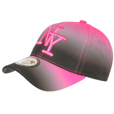 Vente en ligne casquette NY femme et homme originale rose en dégradé noir proposant une visière courbée modèle Flower Renbo marque Hip Hop Honour, casquette baseball rose et noire originale style fashion et classe, sticker New York Original noir et gris, NY brodé rose brillant en relief, taille réglable.