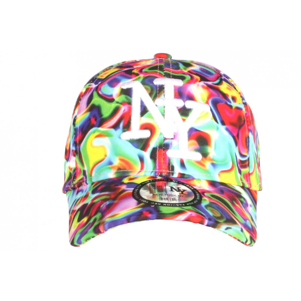 Vente en ligne casquette baseball jaune fluo, rouge, violet et verte fluo graphisme psychédélique, casquette NY homme et femme originale design streetwear fashion coloréeréférence Red PsyCircus marque Hip Hop Honour; NY brodé blanc en 3D, visière curve tendance, autocollant New York Original, taille réglable.
