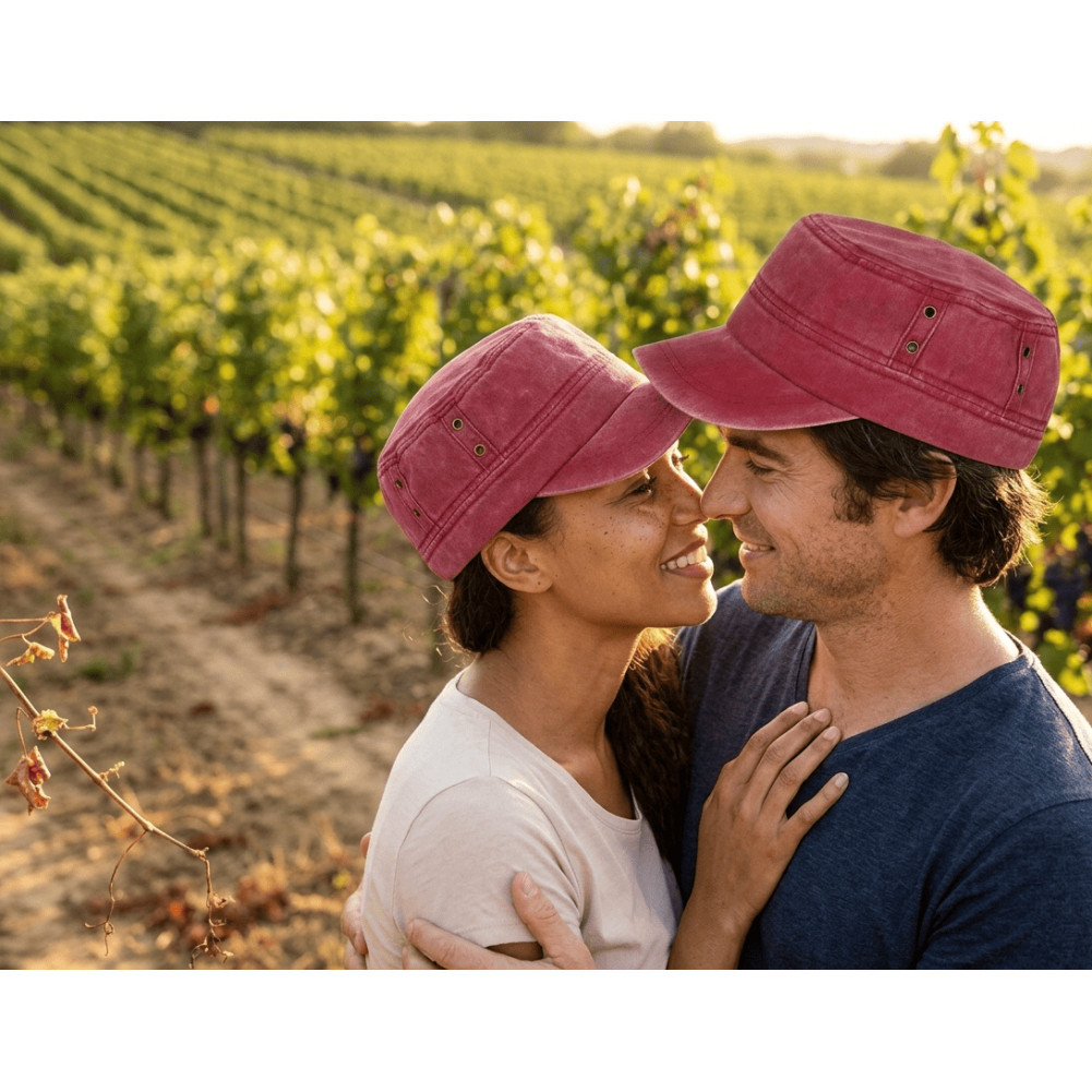 Trouvez en ligne une casquette militaire vintage rouge bordeaux en toile 100% coton allure vieillie délavée fantaisie proposée par Nyls Création modèle Red Havana, casquette armée rétro femme et homme design cubain tendance, visière baseball fashion, casquette army pas cher de taille adulte réglable.