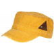 Choisir en ligne une casquette militaire femme et homme originale modèle Lemon Stiago de marque Nyls Création confectionné en toile pure coton premium d'une jolie qualité chapelière robuste et souple assurant un doux confort dans un style cubain fashion. Cette belle casquette army jaune fantaisie affiche une visière baseball tendance, le top est décoré d'un empiècement marron en suédine façon cuir dans une forme de triangle pour un détail mode, deux oeillets de ventilation en métal sont sertis dans cette pièce. La découpe montre trois panneaux en faux bandeau entourant la calotte, l'intérieur présente une doublure formant une bande d'hygiène en coton pour maximiser le confort. Pour régler la taille avec précision et rapidité, cette casquette armée pas cher est agrémentée d'une ceinture en toile avec sa boucle de métal argent foncé.