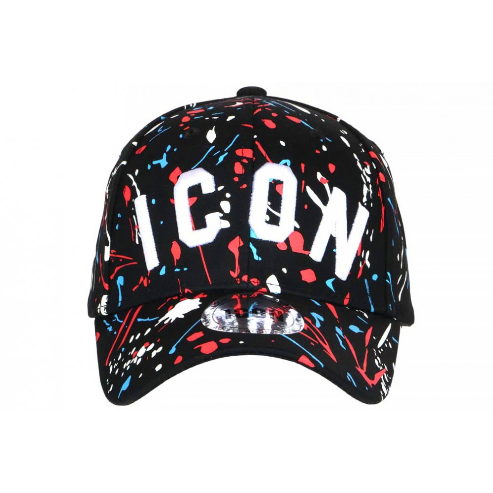 Vente casquette ICON pas cher originale design fashion de la marque Hip Hop of Honour référence Red Fyck confectionnée dans un tissu 100% coton premium noir doux et confortable, les motifs sont en tags rouges, bleu ciel et blancs dans un effet jets et gouttes de peinture fantaisie. La visière baseball mode de cette belle casquette baseball ICON femme et homme est garnie d'un sticker Original Icon Connect argent et noir dans sa version ronde. Le top de cette jolie casquette baseball rouge streetwear est brodé en relief 3D du logo ICON en blanc pour une bonne qualité de finition chic et contemporaine. Pour la porter bien fitée allure classe, cette casquette curve ICON rouge et bleue est montée d'un strap avec sa boucle métallique à l'arrière.