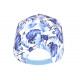 Vente Casquette baseball blanche imprimé de fleurs bleues exotiques référence Sky Bali création Hip Hop Honour, casquette NY femme et homme imprimé tropical été tendance et fantaisie, broderie NY bleu ciel en relief, visière recourbée tendance avec sticker New York Original gris argent, taille réglable.