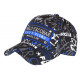 Acheter casquette Escobar Plata o Plomo bleue de la marque SKR design city urban fashion, tissu souple confortable. Cette belle casquette Plata o plomo homme et femme est cousue du grand patch Pablo Escobar Medellin bleu et noir. Le print est travaillé en tags avec des graffitis bleus et blancs sur un fond noir esprit streetwear. Look original et contrasté, cette jolie casquette Plata Pablo est une allusion à la Colombie dans un style bad boys life bien connue avec le célèbre narcotraficant. La taille de cette casquette Pablo Escobar noire et bleue s'ajustera simplement par une attache en toile imprimée et sa boucle métallique argent.