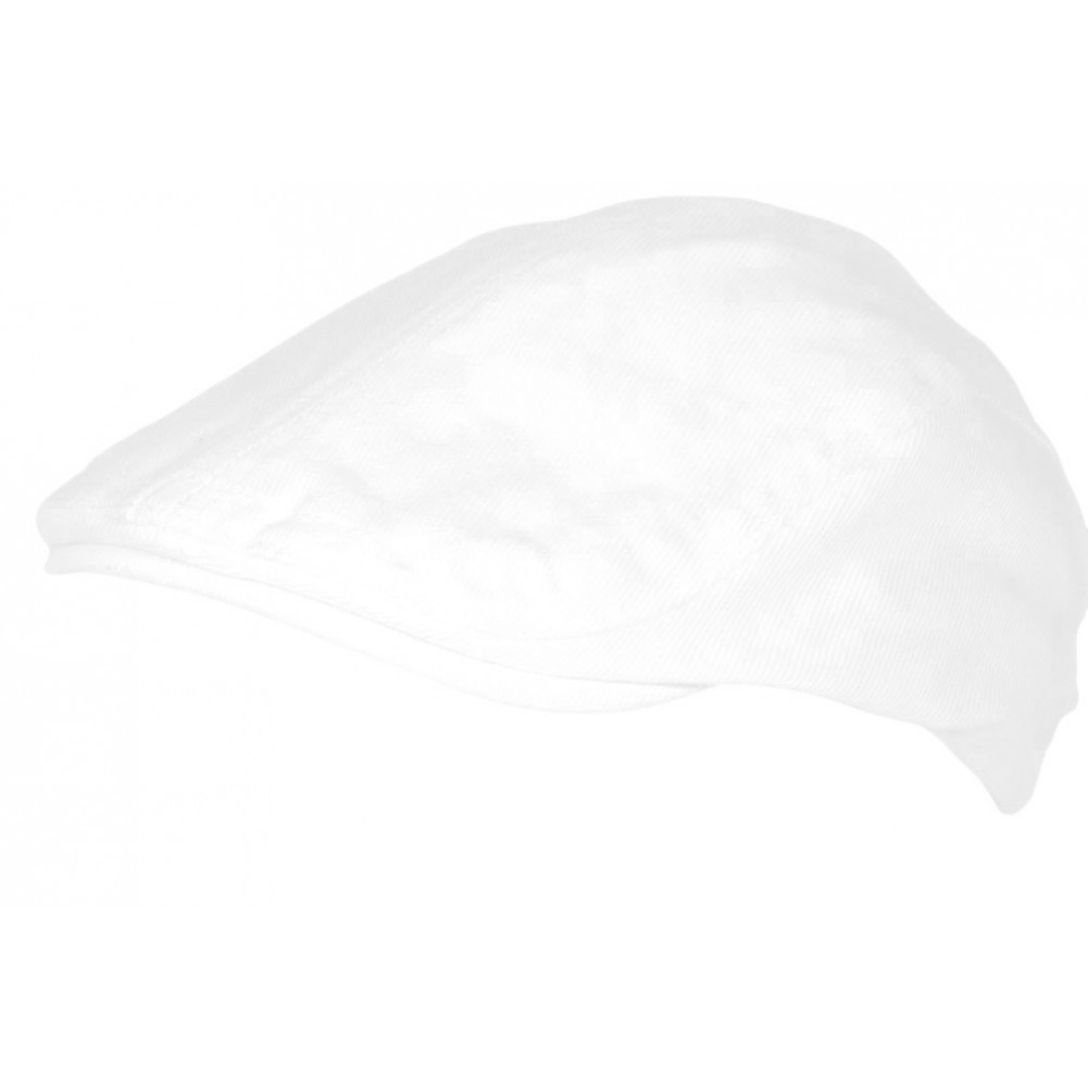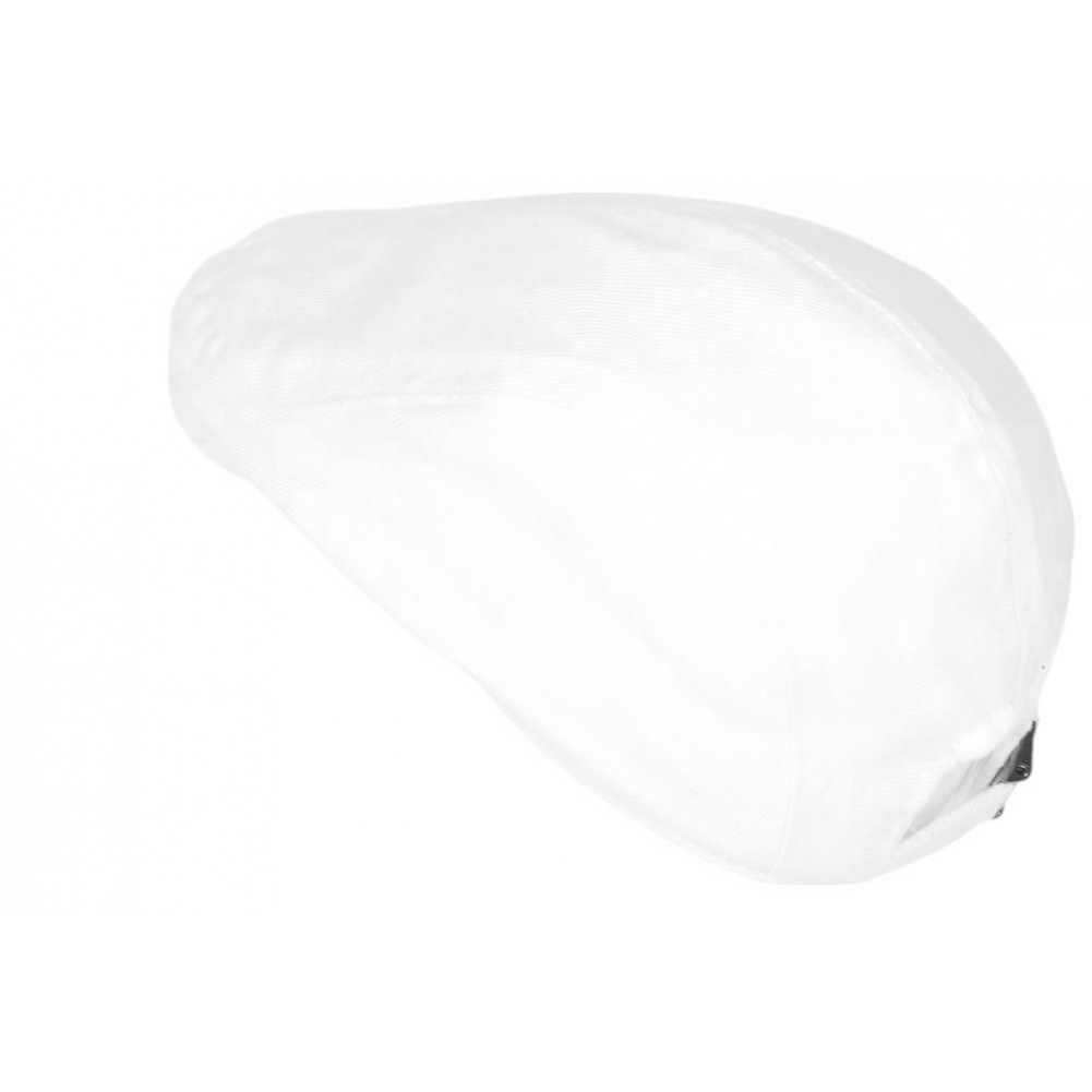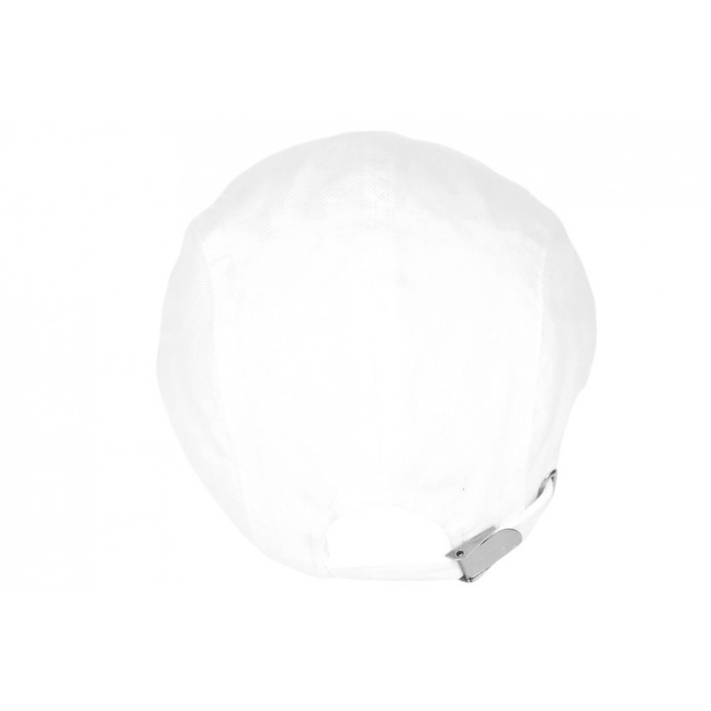 Achetez un béret casquette blanc homme et femme en toile pure coton doux qualité confortable et résistante, béret blanc pas cher look léger et sportswear, coupe plate élancée fashion, taille réglable par ceinture arrière, référence White Pivyk de la collection Nyls Création.