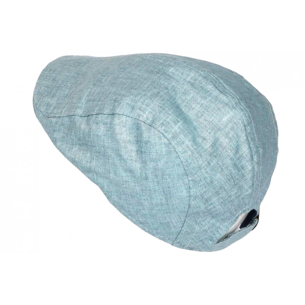 Vente casquette lin bleu clair brillant de marque Nyls Création modèle Sky Sessyk confectionnée en tissu lin mélangé doux dans une découpe en 3 pans ligne ajustée graphisme chiné. Tradition chapelière new look, ce beau béret en lin homme et femme tendance est un accessoire headwear fantaisie et décontracté avec sa matière originale et son allure élégante. Contemporaine pour se déplacer en toutes saisons, couleur facile à porter pour vos déambulations city ou campagne, cette casquette plate bleue ciel pas cher propose une visière arrondie pour une finition USA custom. Ce béret bleu clair tendance est en tissu souple et léger, il se portera pour une allure mode en tout confort avec sa taille réglable sur l'arrière par une ceinture arrière avec sa bouche de métal.