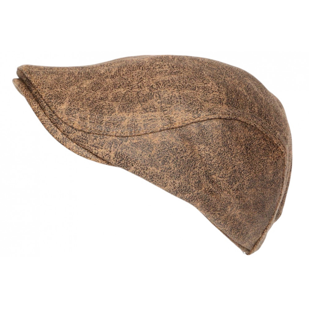 Achat béret casquette plate en cuir beige chiné synthétique confectionné en tissu suédine pour homme et femme référence Sand Kylro de la marque Nyls Création, casquette béret imitation cuir de daim beige retro et confort, visière ronde rétro, taille réglable avec ceinture arrière et boucle de métal.