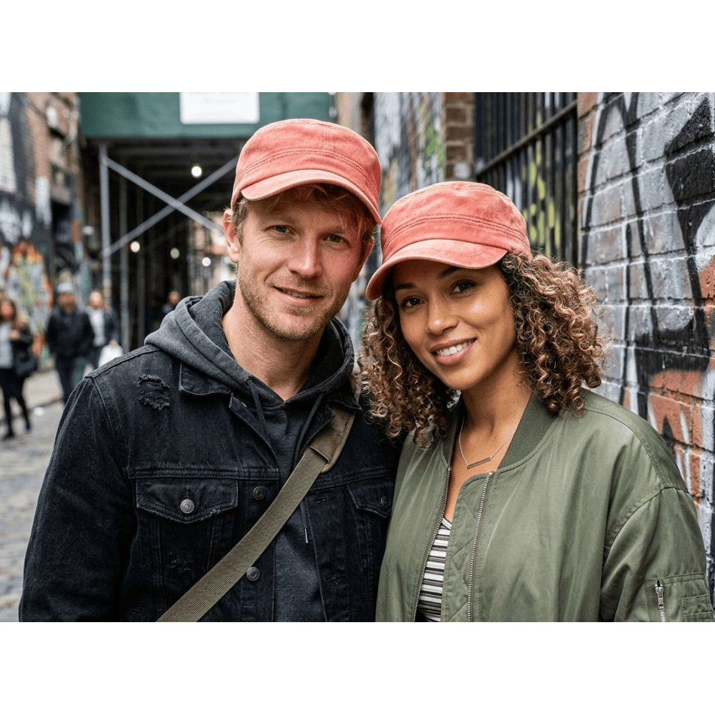 Vente casquette militaire homme et femme en coton délavé pour style décontracté et un confort optimal. Sa teinte orange rétro assure une touche de fraîcheur à votre garde-robe, tandis que sa coupe armée classique offre une allure intemporelle. Le tissu en coton délavé apporte à cette casquette army orange pas cher une texture douce et agréable au toucher, avec un aspect vintage naturel qui s'améliore avec le temps. La visière baseball tendance protège efficacement du soleil, et la conception militaire caractéristique inclut des surpiqûres soignées et une forme ajustée. Parfaite pour les sorties décontractées ou les journées ensoleillées, cette casquette cubaine vintage orange s'adapte à tous les styles vestimentaires. Son design épuré et sa construction robuste en font un accessoire polyvalent pour toutes les saisons. La casquette est légère et confortable, idéale pour une utilisation quotidienne, que ce soit en ville ou en vacances.