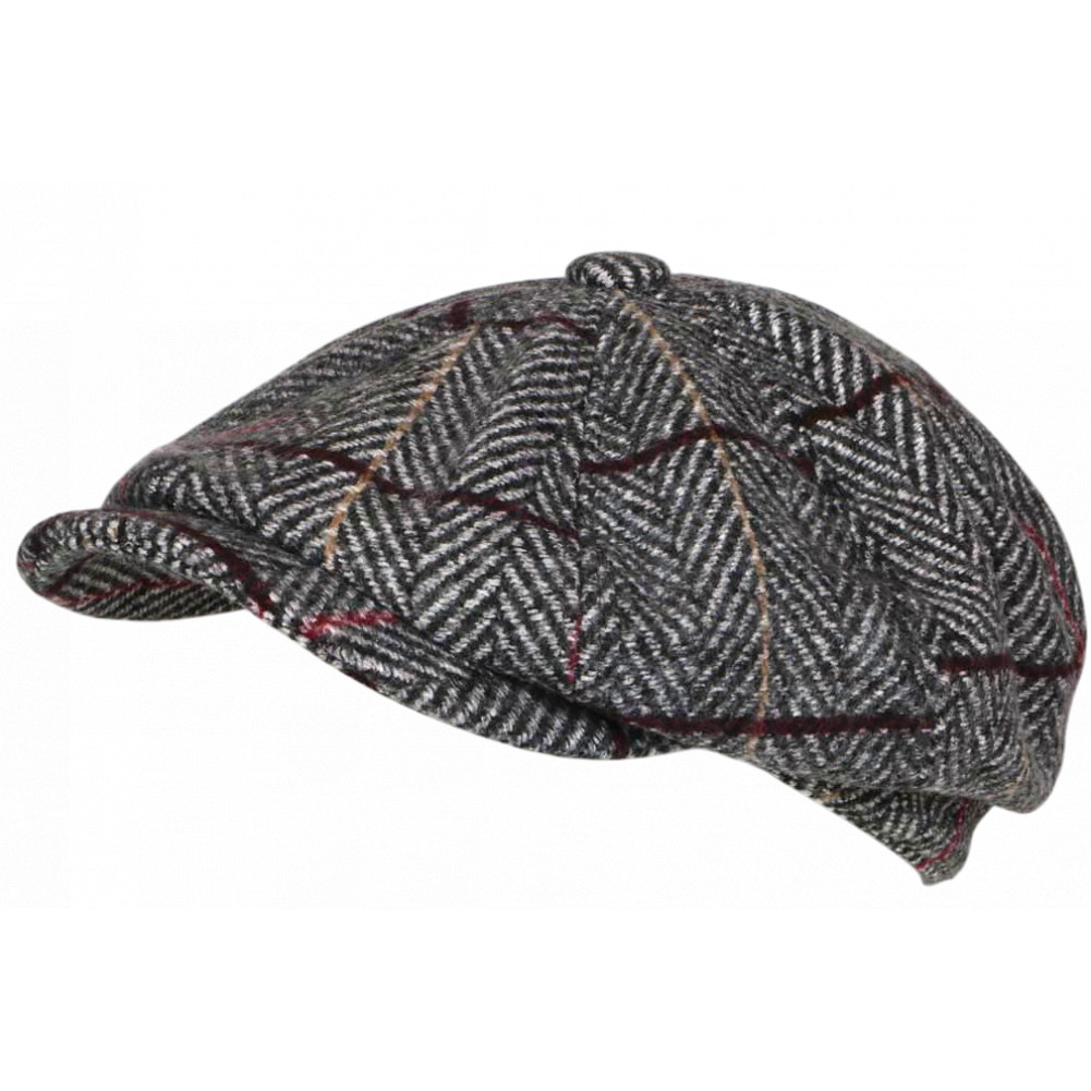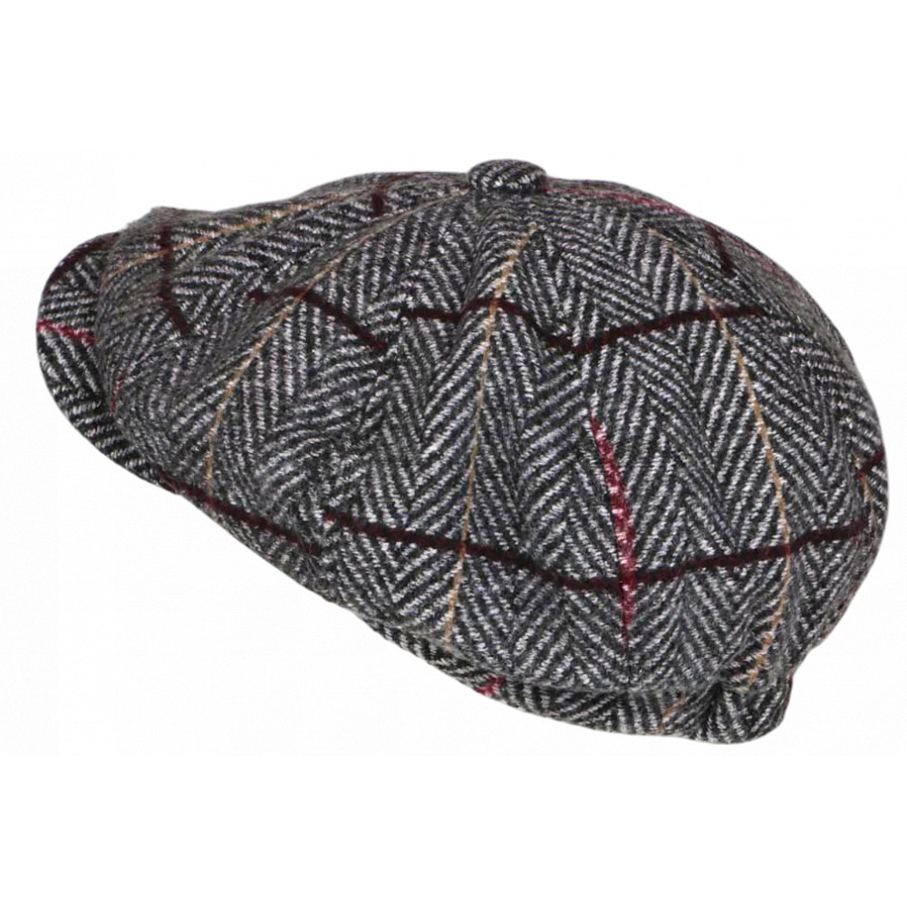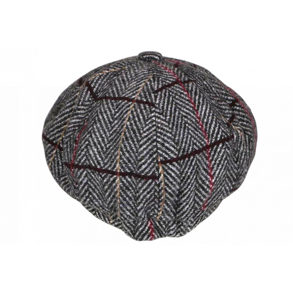 Trouvez en ligne un béret gavroche gris clair à chevrons style vintage tweed anglais tradition chapellerie modèle Silver Gurwal de marque Nyls Création, casquette laine homme et femme look hiver rétro, doublure polaire plush noire chaude, idéale pour un esprit hipster. Casquette irlandaise grise pas cher à la taille ajustable par un discret smoke sur l'arrière.