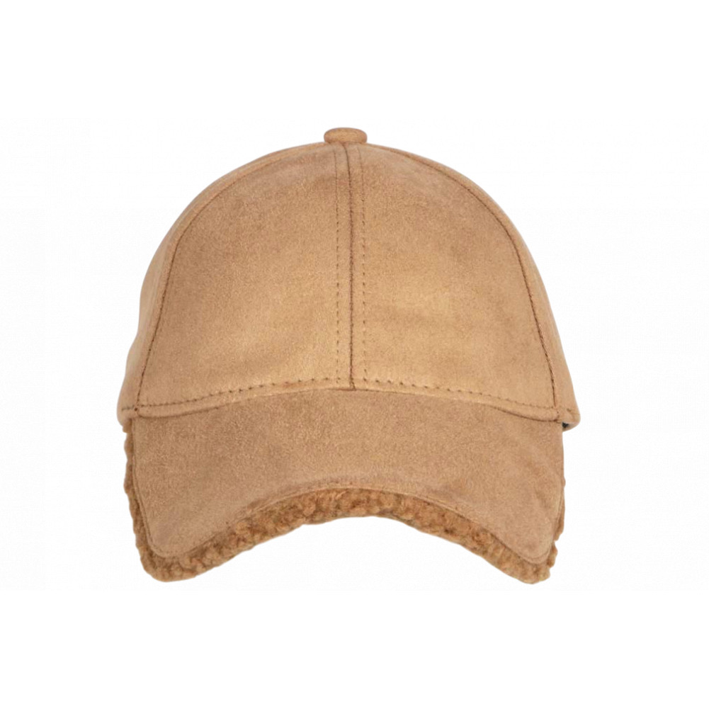 Vente en ligne une casquette baseball daim beige imitation cuir en suédine toile douce et confort modèle Brown Neltey de marque Nyls Création, casquette daim homme et femme tendance avec fourrure beige sous la visière style classe et original, visière arrondie. Casquette hiver chaude beige avec taille ajustable.
