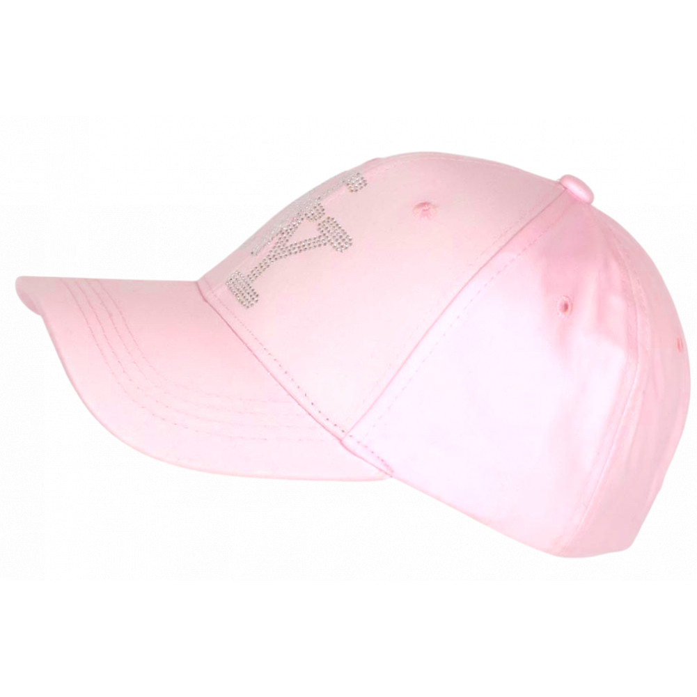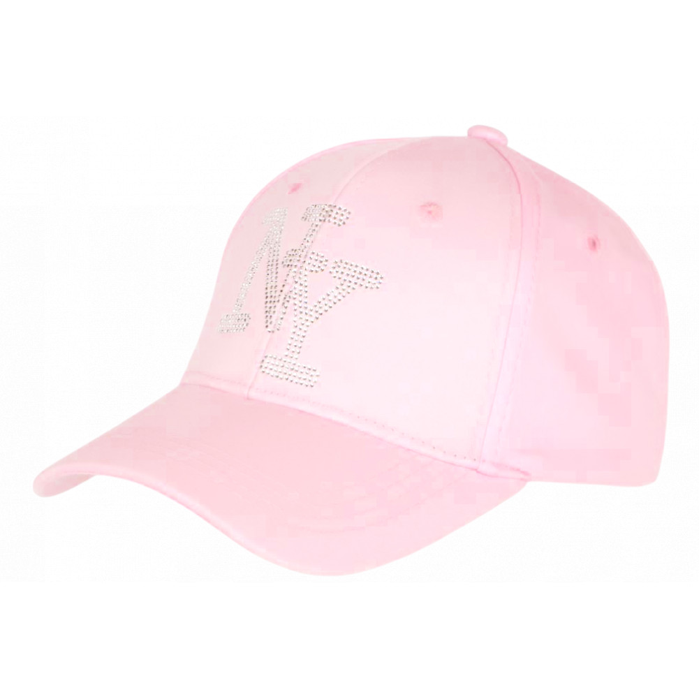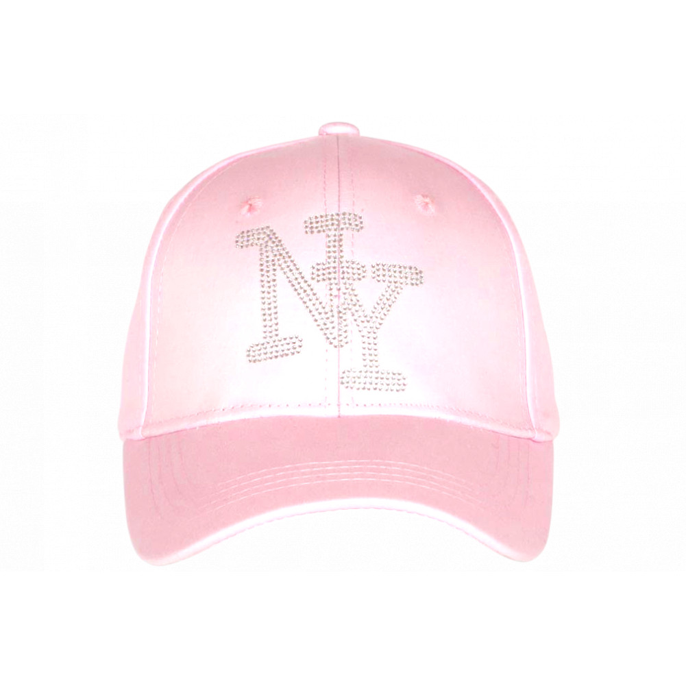 Vente casquette NY strass rose en toile de coton design prestige et épuré référence Sweety Stazky de marque Hip Hop Honour, casquette femme et homme fashion look joaillerie, visière baseball tendance, griffée NY en paillettes argentést. Taille réglable.