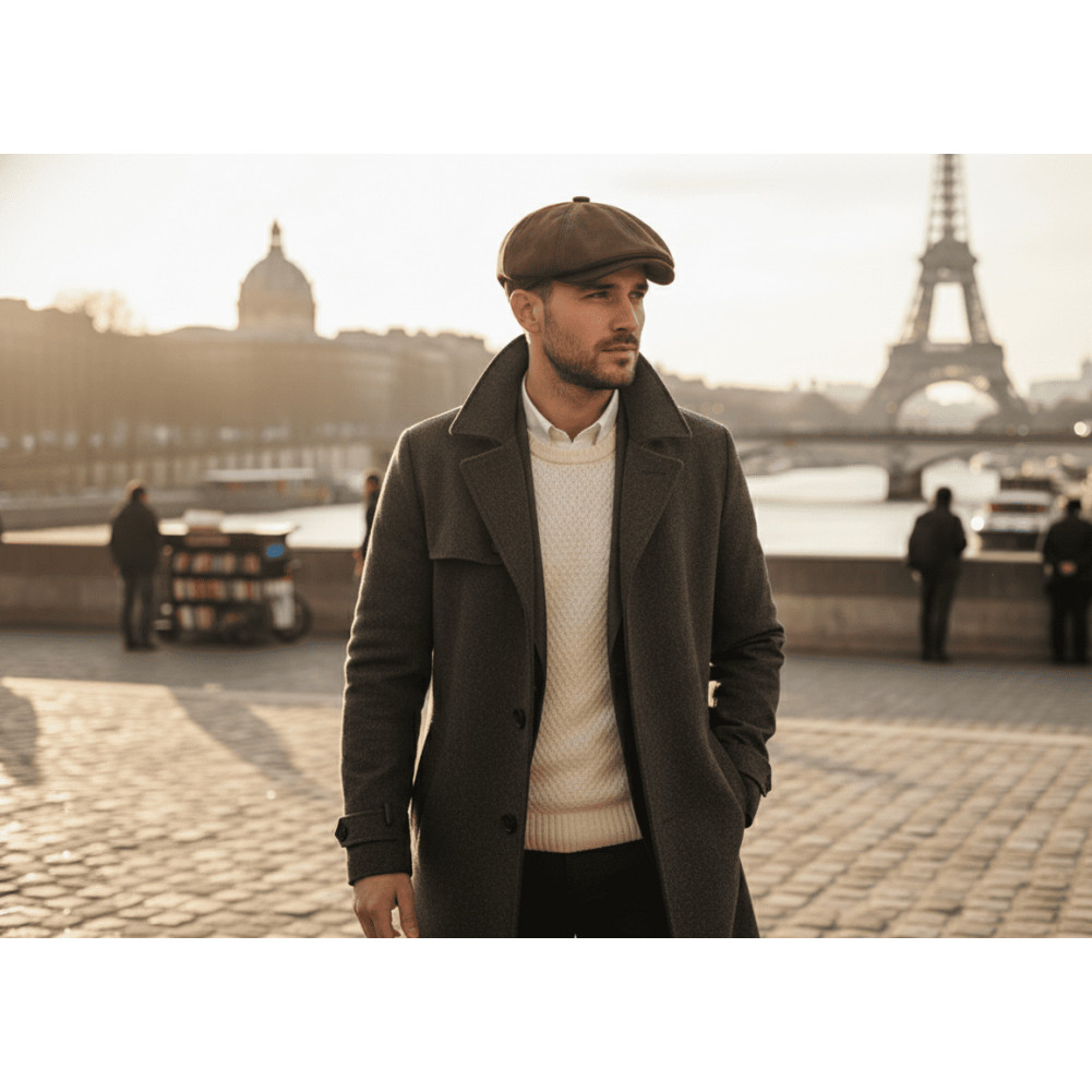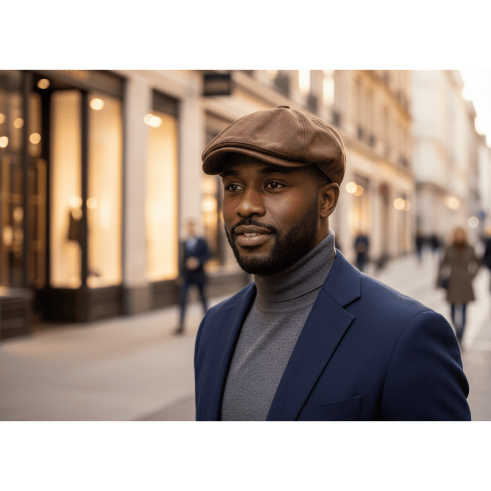 Découvrez la casquette gavroche homme marron en suédine, une casquette intemporelle inspirée du style new-yorkais vintage.