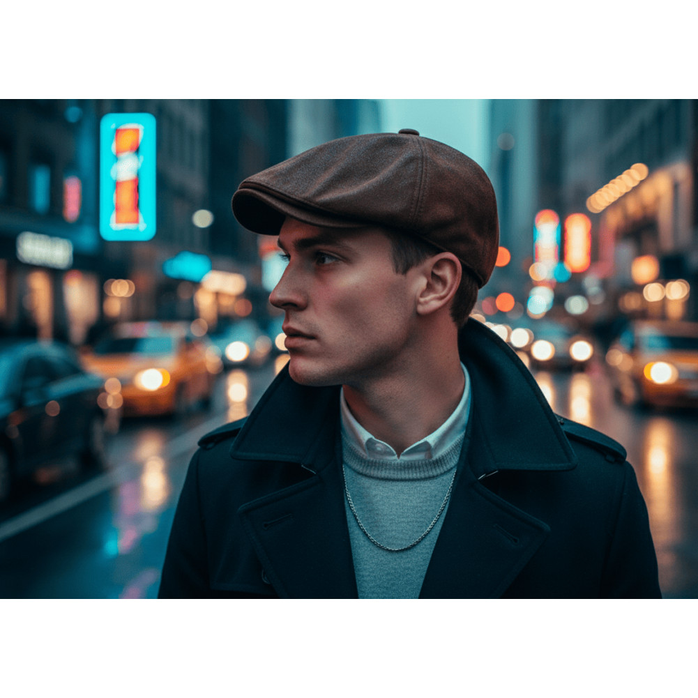 Cette casquette marron rétro s’inspire des modèles portés dans les années 20, remis au goût du jour avec une touche urbaine et moderne. Sa matière en suédine douce, effet cuir, lui donne une allure raffinée tout en restant agréable à porter au quotidien.