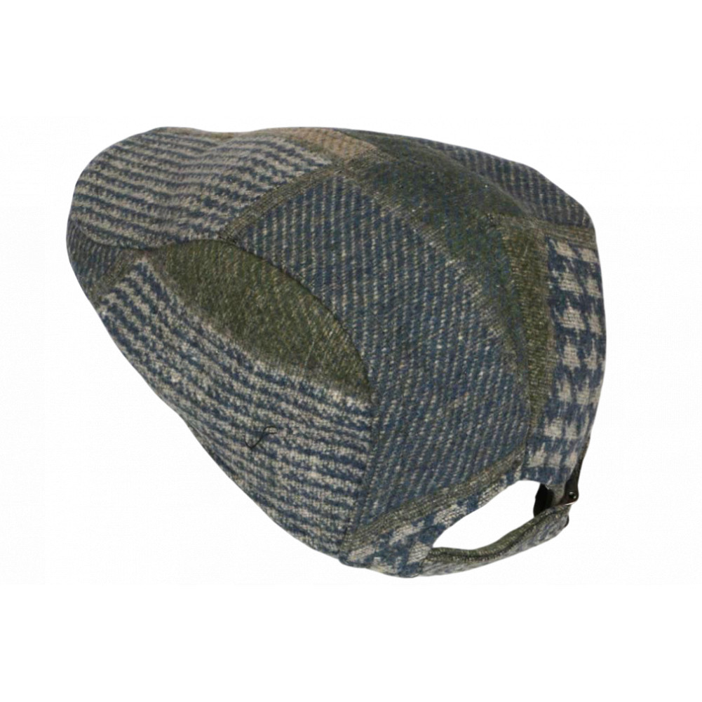 Cette casquette plate homme est confectionnée façon tweed patchwork, un assemblage de motifs classiques tels que le pied-de-poule, le chevron et le carreau écossais. Ses nuances naturelles de bleu, vert et beige rappellent les paysages d’Écosse et donnent à cette casquette anglaise pas cher un style authentique et raffiné.
