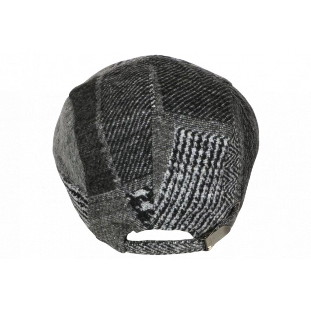 Trouvez en ligne un béret casquette anglaise grise et noire design patchwork tradition chapellerie marque Nyls Création modèle Silver Windsaur, casquette plate homme et femme en laine carreaux noirs et gris doublure matelassée en toile noire pour un style britannique ou hipster. Casquette hiver pas cher Motifs pied-de-poule, chevron, taille ajustable. Parfaite pour un look rétro ou casual.