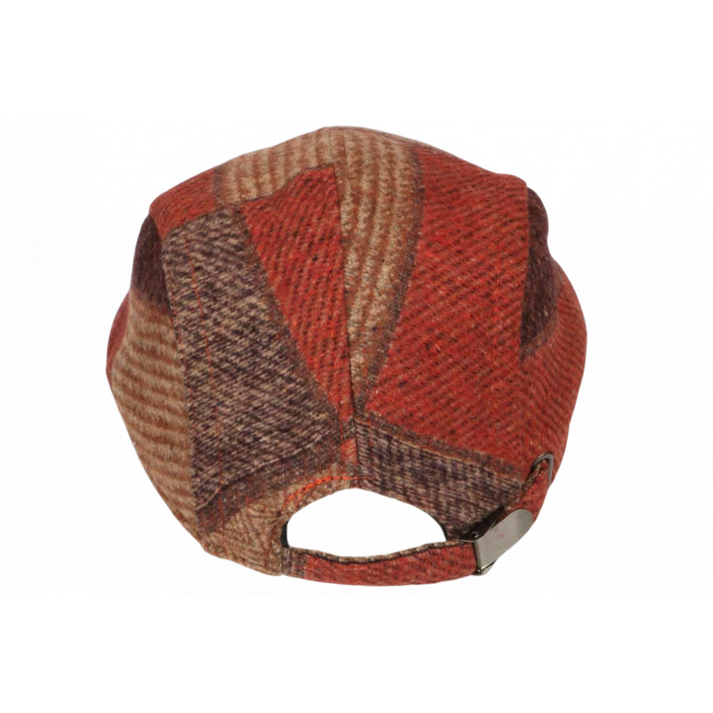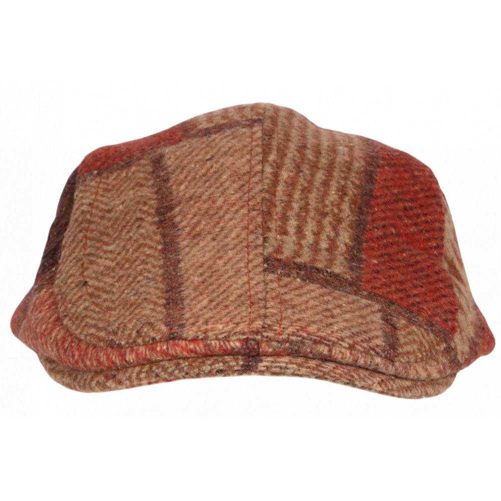 Achetez en ligne un béret casquette anglaise orange et marron design patchwork tradition chapellerie marque Nyls Création modèle Sunny Windsaur, casquette plate homme et femme en laine carreaux oranges et marrons doublure matelassée en toile noire pour un style britannique ou hipster. Casquette hiver pas cher Motifs pied-de-poule, chevron, taille ajustable. Parfaite pour un look rétro ou casual.