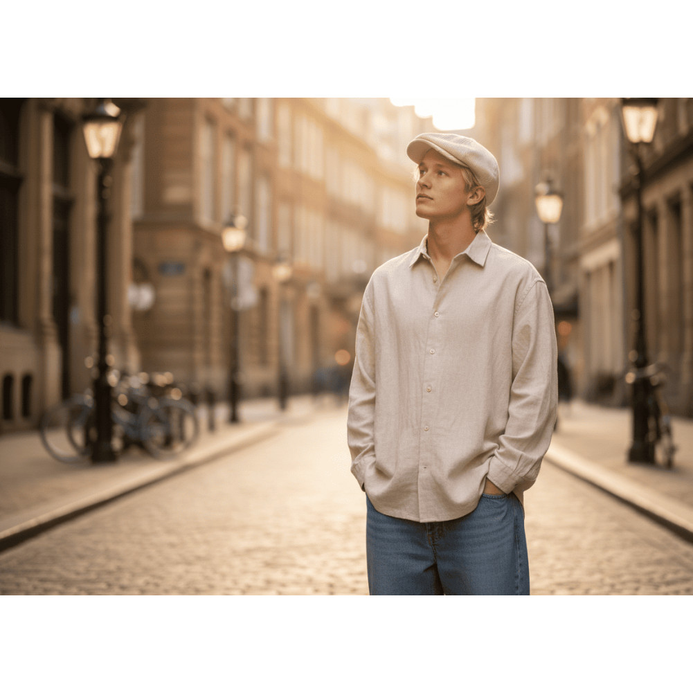 Cette casquette ivoire en velours se distingue par sa forme caractéristique : une calotte arrondie et un petit bord rigide à l’avant, typiques des casquettes gavroches traditionnelles. Cette coupe iconique rappelle les casquettes des années 1920 portées par les artistes, les journalistes et les ouvriers élégants. Aujourd’hui, elle revient sur le devant de la scène mode avec un charme authentique et un esprit vintage irrésistible.