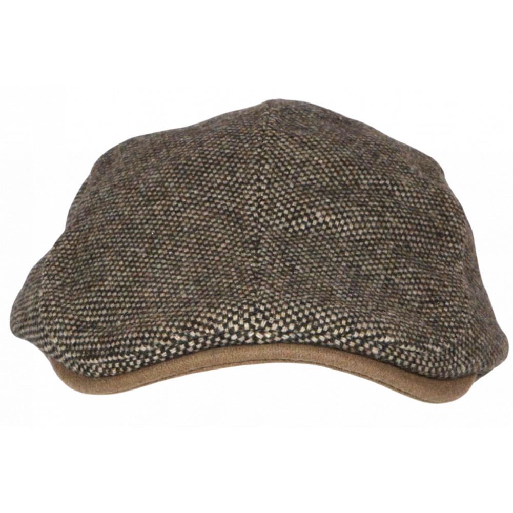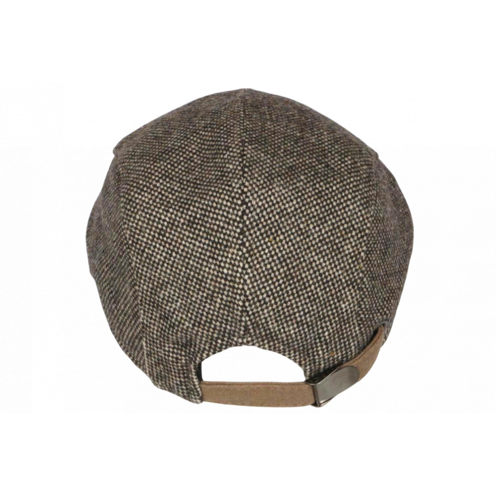 Choisir en ligne une casquette anglaise marron chiné beige en laine pas cher style tweed vintage mode qualité chapelière tradition marque Nyls Création modèle Brown Cresty, béret casquette hiver homme et femme en laine mixée, doublure molletonnée pour un style rétro chic et confort. Casquette laine marron pas cher taille réglable avec ceinture et boucle de métal arrière.