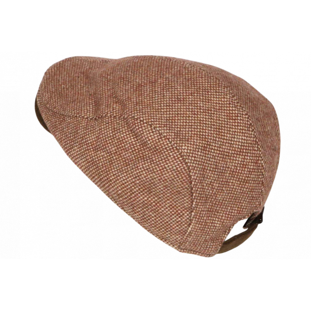 Cherchez en ligne une casquette anglaise rouge chiné beige en laine pas cher style tweed vintage mode qualité chapelière tradition de la marque Nyls Création modèle Red Cresty, béret casquette hiver homme et femme en laine mixée, doublure molletonnée pour un style rétro chic et confort. Casquette laine rouge pas cher taille réglable avec ceinture et boucle de métal arrière.