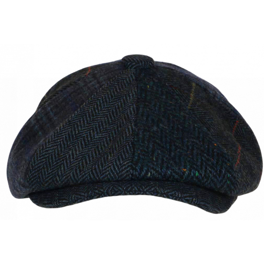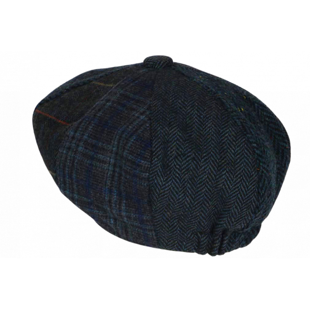 Acheter en ligne un béret gavroche patchwork bleu style anglais vintage tweed fabrication chapellerie tradition modèle Navy Surwal de la marque Nyls Création, casquette gavroche homme et femme ligne hiver rétro, doublure en tissu matelassé chaud et confort, idéale pour un esprit hipster. Casquette irlandaise bleue patchwork pas cher avec taille ajustable par un discret smoke sur l'arrière.