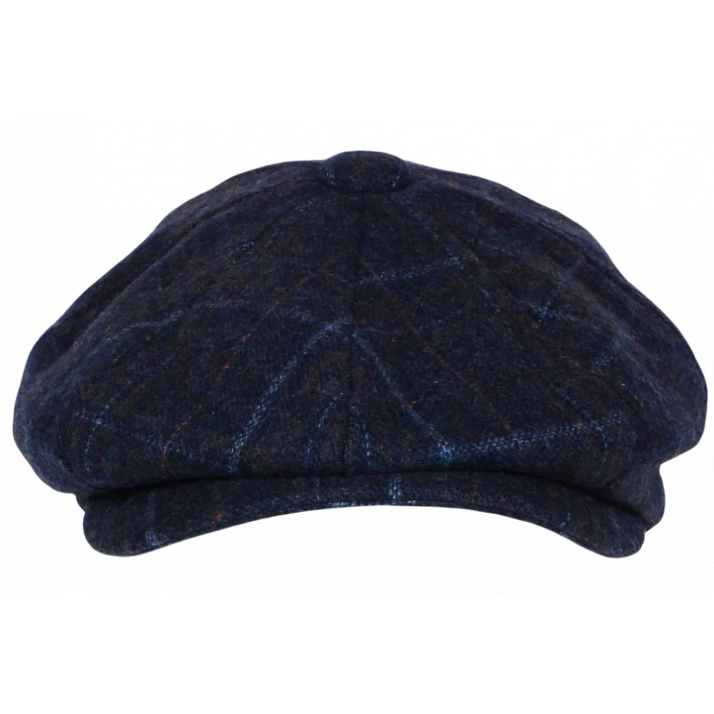 Choisir en ligne un béret gavroche en laine bleue carreaux ciels look anglais vintage tweed fabrication chapellerie tradition modèle Sky Surwal marque Nyls Création, casquette gavroche homme et femme mode hiver rétro, doublure en tissu matelassé écossais, idéale pour un esprit hipster. Casquette irlandaise bleue pas cher taille ajustable par un discret smoke sur l'arrière.