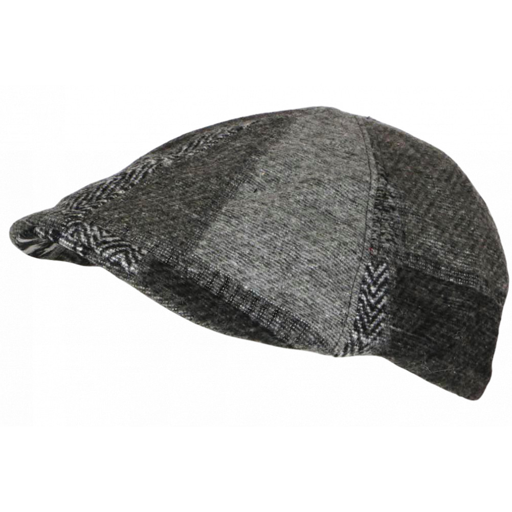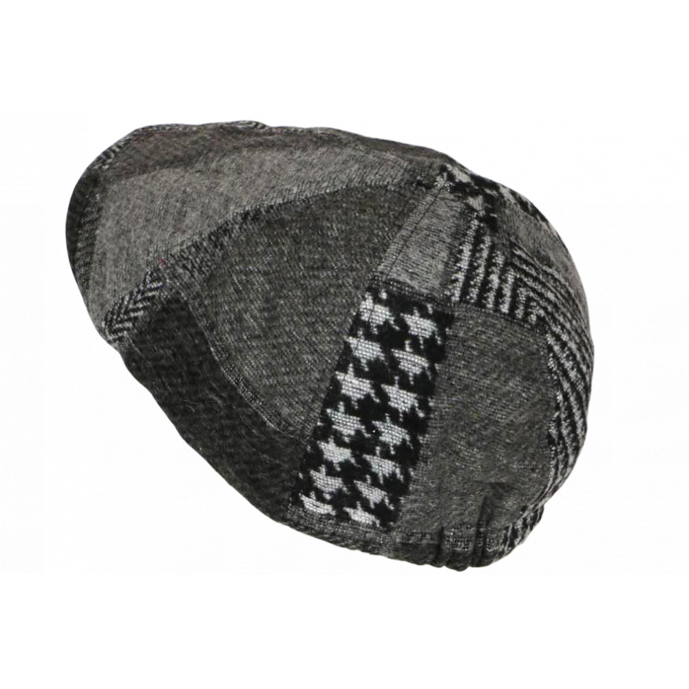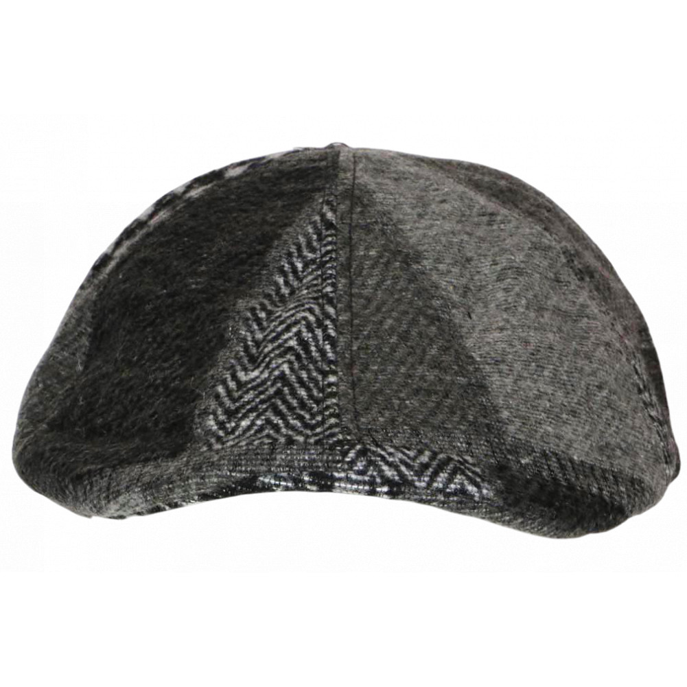 Le Charme du Patchwork : La singularité de cette casquette plate originale réside dans son assemblage patchwork de différentes laines Tweed aux motifs divers. Chaque panneau présente un motif gris argent, anthracite et noir et une texture distincts, créant un effet visuel captivant qui garantit que chaque casquette laine homme est légèrement unique.