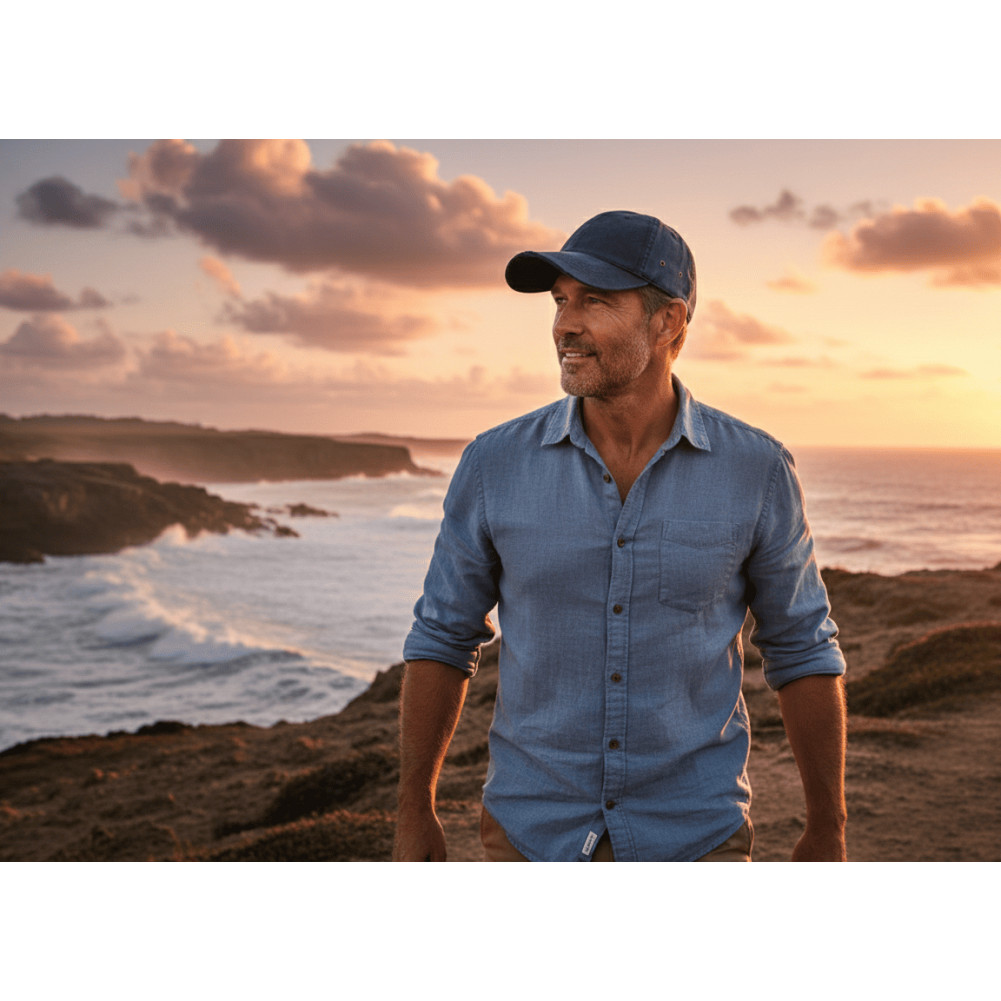UNE TOILE CIRÉE HAUTE PERFORMANCE Ne vous fiez pas à son allure décontractée : cette casquette cirée bleue est une véritable barrière contre les éléments. La toile de coton est imprégnée d'une cire protectrice qui rend le tissu hydrophobe. Les gouttes de pluie perlent sur la surface sans pénétrer la fibre, vous gardant au sec lors de vos escapades maritimes ou citadines. Pour un confort thermique accru, des œillets de respiration en métal vieilli permettent d'évacuer l'humidité intérieure tout en ajoutant une touche esthétique industrielle.
