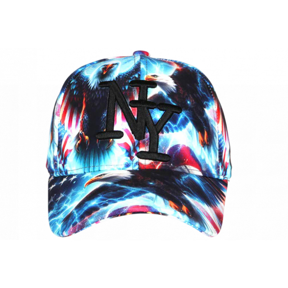 Cette casquette Aigle Américain à visière courbée affiche un puissant motif Pygargue avec drapeau USA et effet éclair. Casquette NY baseball unisexe, réglable et confortable, idéale pour un look streetwear, urbain ou casual. Casquette New York originale avec logo NY brodé noir en relief pour un style affirmé.