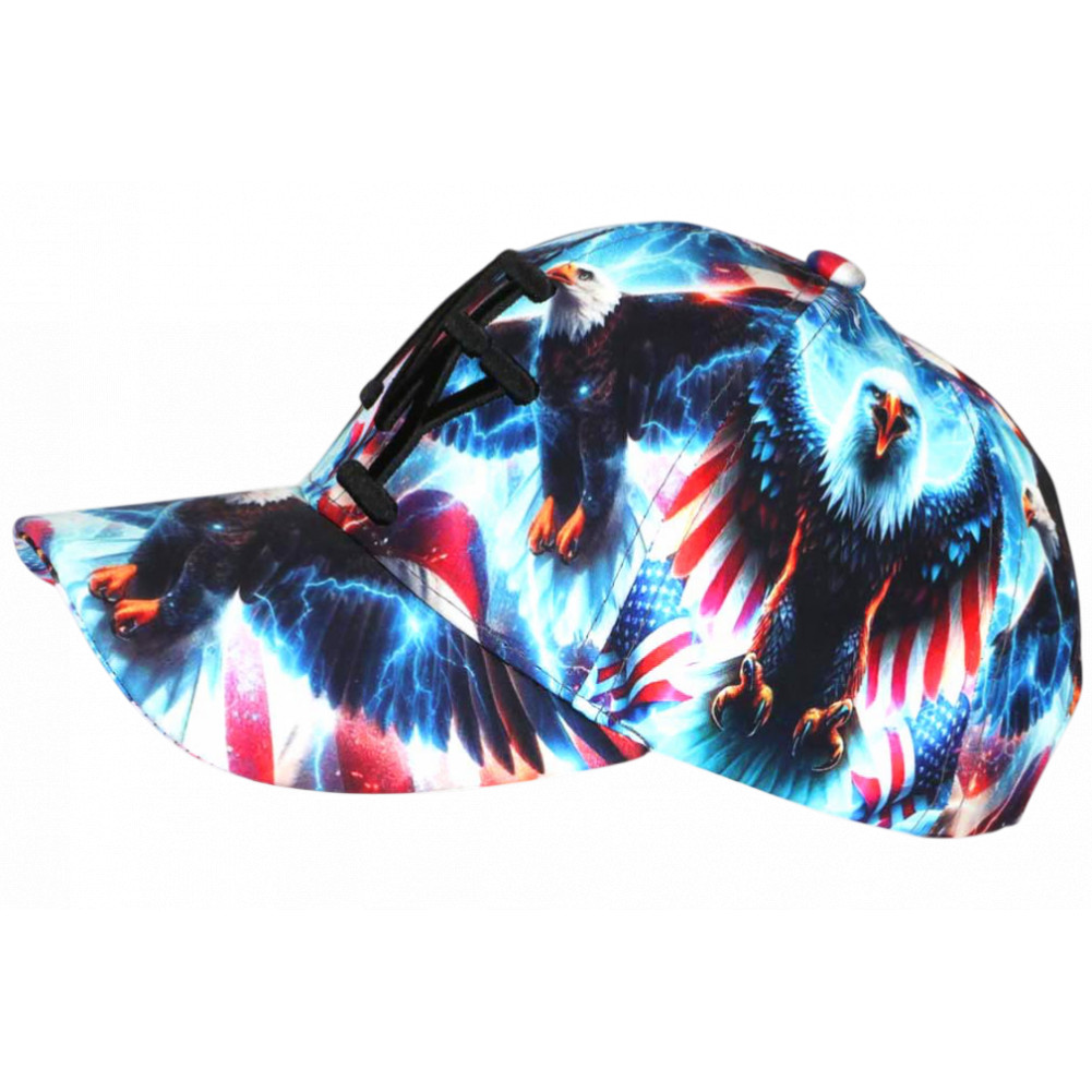 Affirmez votre personnalité avec cette casquett aigle américain à visière courbée, inspirée de l’univers streetwear et de l’iconographie USA. Son design spectaculaire mêle un aigle majestueux, des éclairs électriques et le drapeau américain, créant un visuel fort et dynamique.