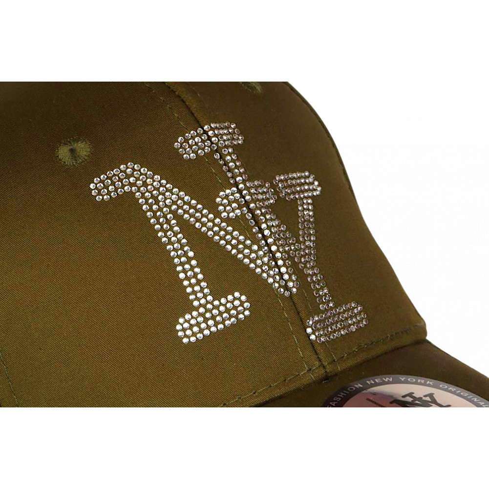 Adoptez un style moderne avec cette casquette NY verte strass, un accessoire de mode qui combine sobriété et détails brillants.