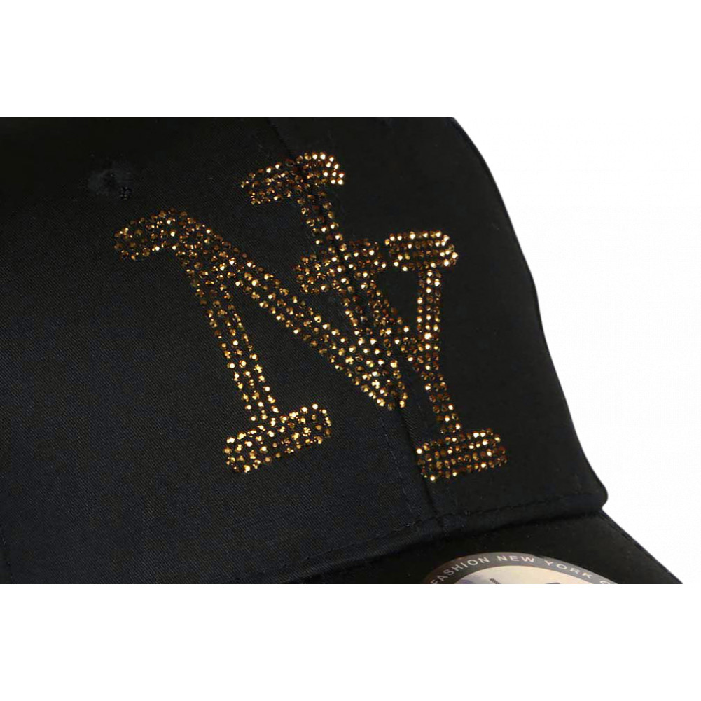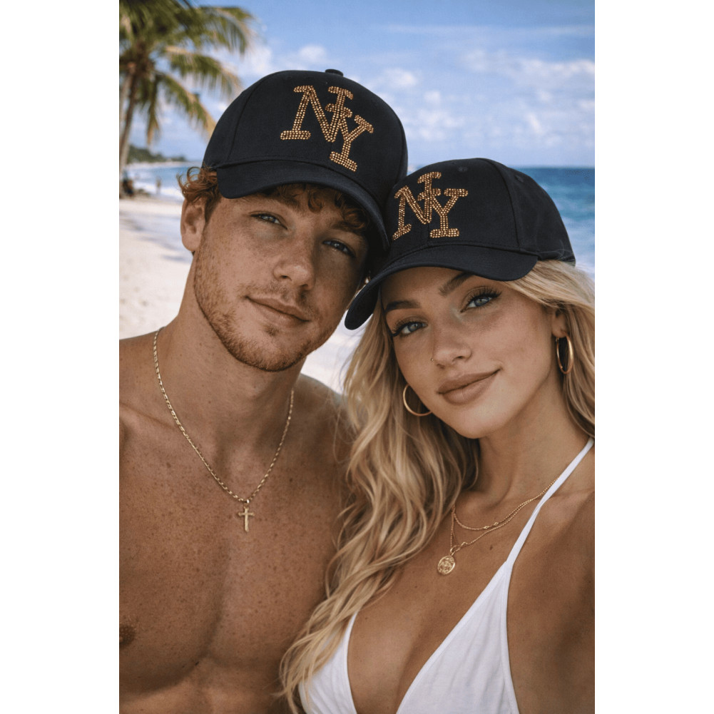 Casquette NY noire avec logo strass doré brillant, idéale pour apporter une touche élégante et tendance à votre tenue. Cette casquette strass noire style streetwear chic associe un design sobre à l’éclat du logo doré pour un look urbain moderne. Casquette noire paillettes Parfaite pour compléter une tenue casual, streetwear ou fashion au quotidien.