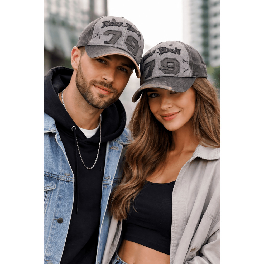 Apportez du caractère à votre style avec cette casquette noire vintage denim. Avec son effet usé, sa broderie "79" en relief et son inscription "New York", cette casquette NY rétro en coton incarne parfaitement le style rétro streetwear. Taille réglable à l’arrière, elle convient aussi bien aux hommes qu’aux femmes.