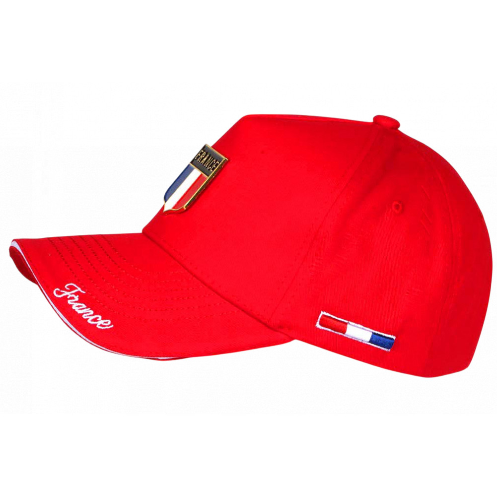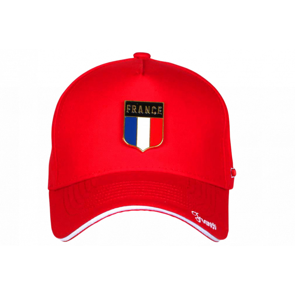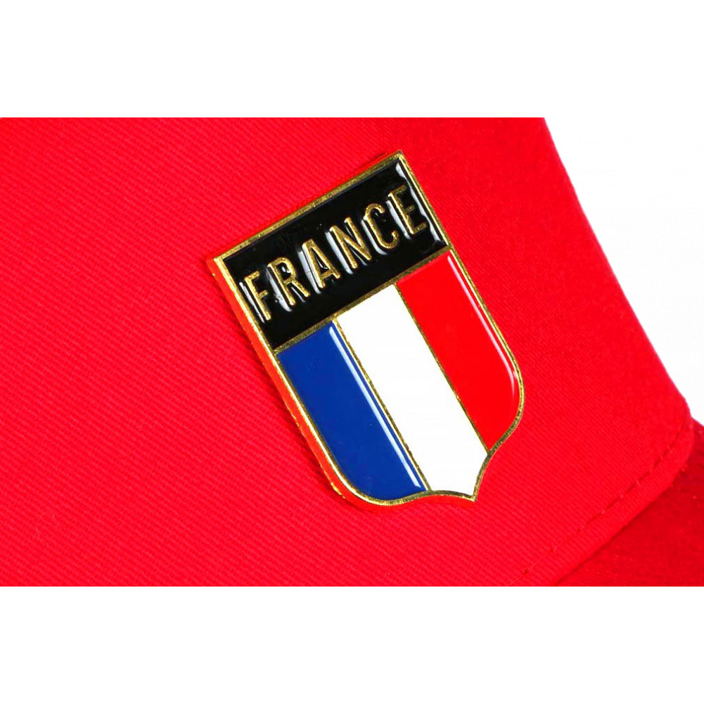 Trouvez en ligne votre casquette France rouge avec badge drapeau en métal, idéale pour se démarquer dans les tribunes. Cette casquette supporter France rouge est parfaite pour les matchs, événements sportifs et ambiances de stade.. Cette casquette drapeau tricolore est confectionnée en toile de en pur coton premium confortable.