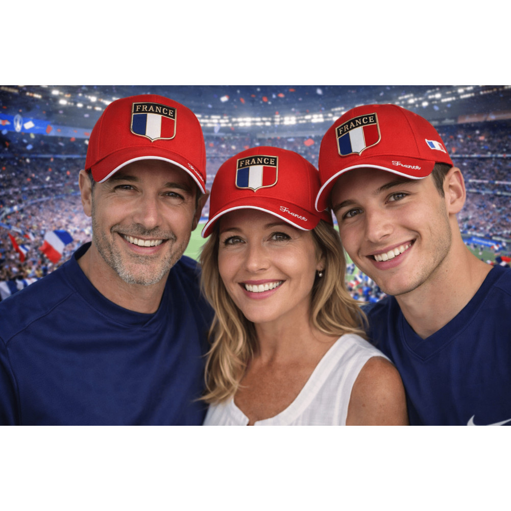 Sa couleur rouge vif apporte une forte visibilité, idéale dans les tribunes, lors des matchs ou pendant les grands événements sportifs. Cette casquette France rouge supporter est parfaite pour créer une présence forte dans une foule.
