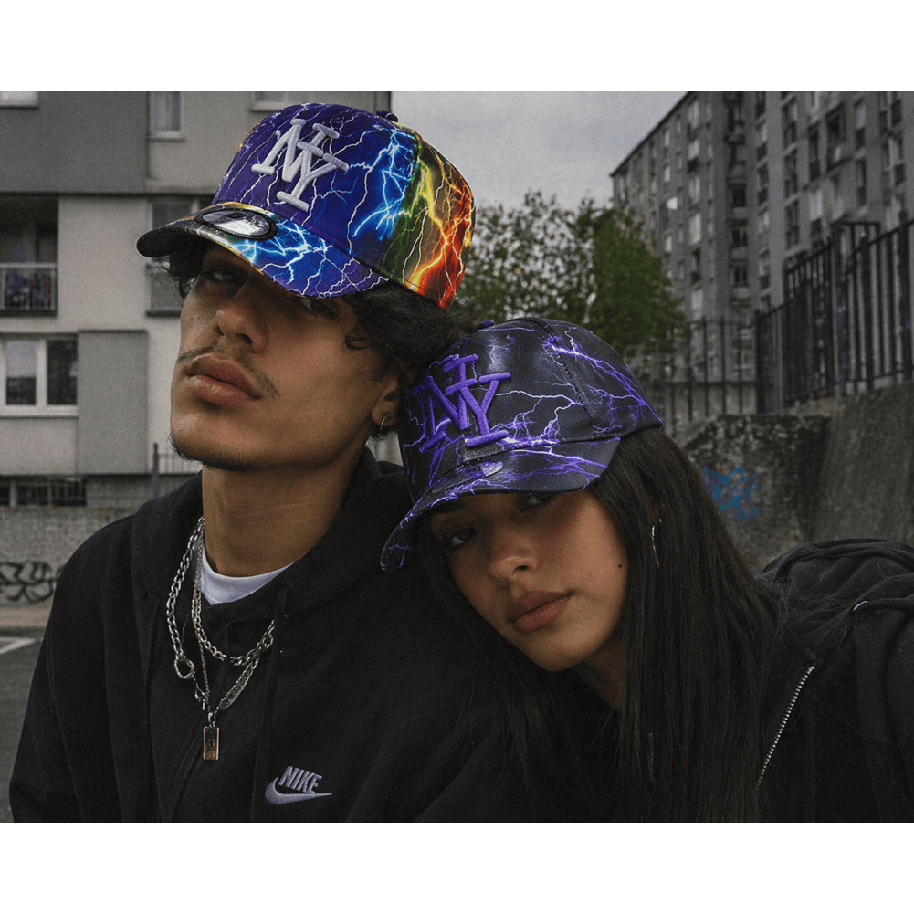 Casquette NY noire effet foudre violette, casquette New York homme femme au design lightning original. Idéale pour streetwear urbain, soirée, festival, sortie et lifestyle, cette casquette NY tendance noir violet s’impose comme une casquette New York originale pour look moderne, visuel fort et style affirmé.