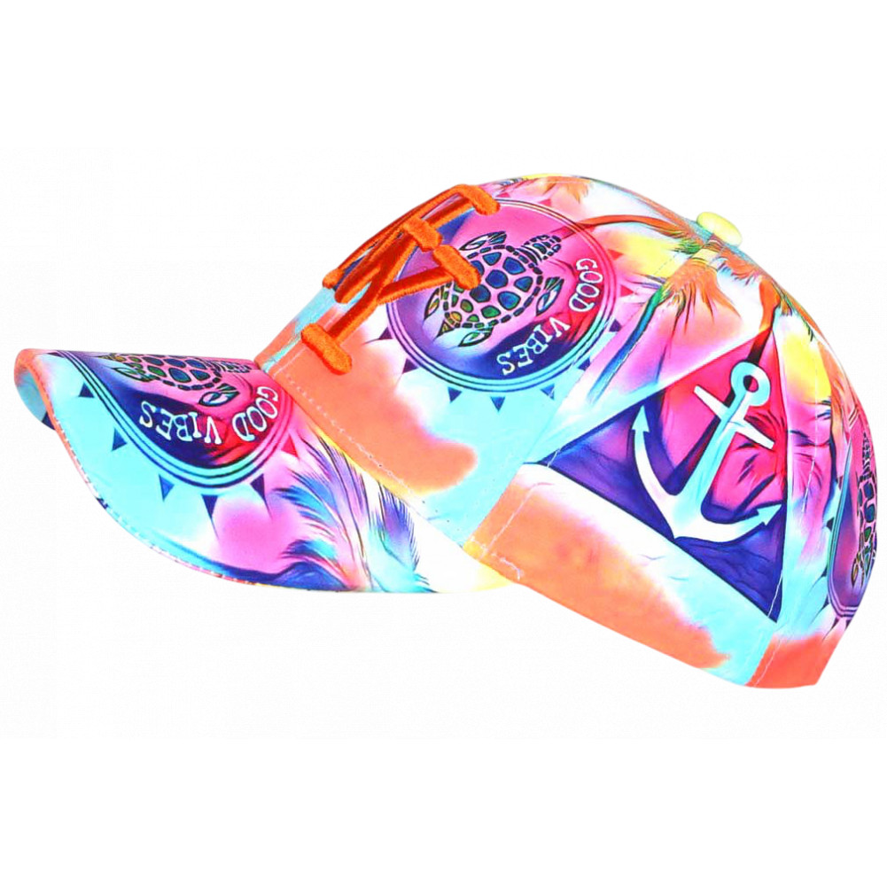 Achetez en ligne votre casquette New York au design tropical multicolore, inspirée de l’univers plage et vacances. Avec ses motifs de tortues et son style Good Vibes, cette casquette NY femme et homme exotique apporte une touche colorée et originale. Idéale pour l’été, les sorties, les festivals ou un look décontracté homme femme.