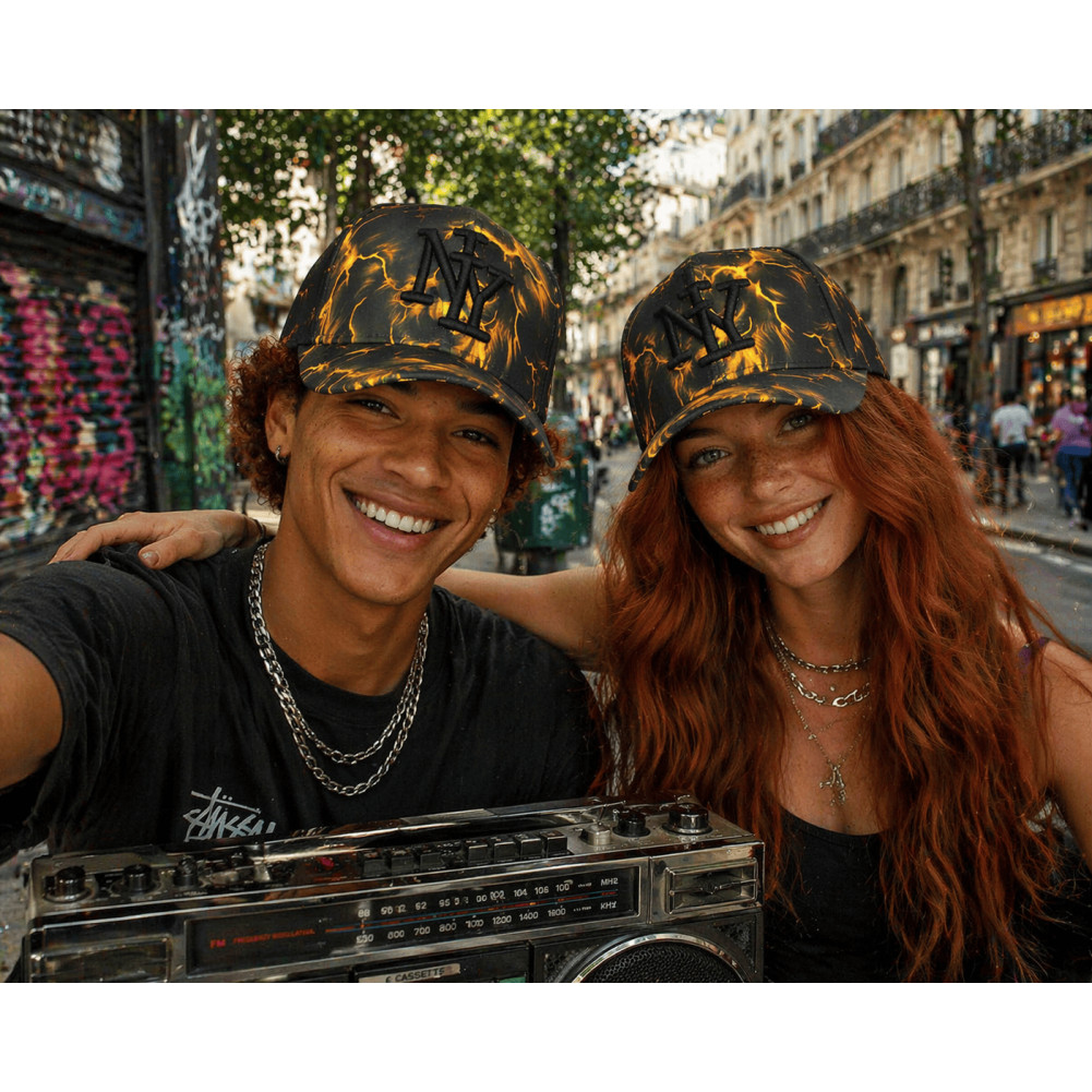 Le jeu de couleurs noir et jaune renforce l’aspect premium et permet une association facile avec une tenue urbaine. Ce type de design est particulièrement recherché dans les univers casquette New York tendance, style hip hop moderne et mode urbaine actuelle, où l’impact visuel joue un rôle clé.