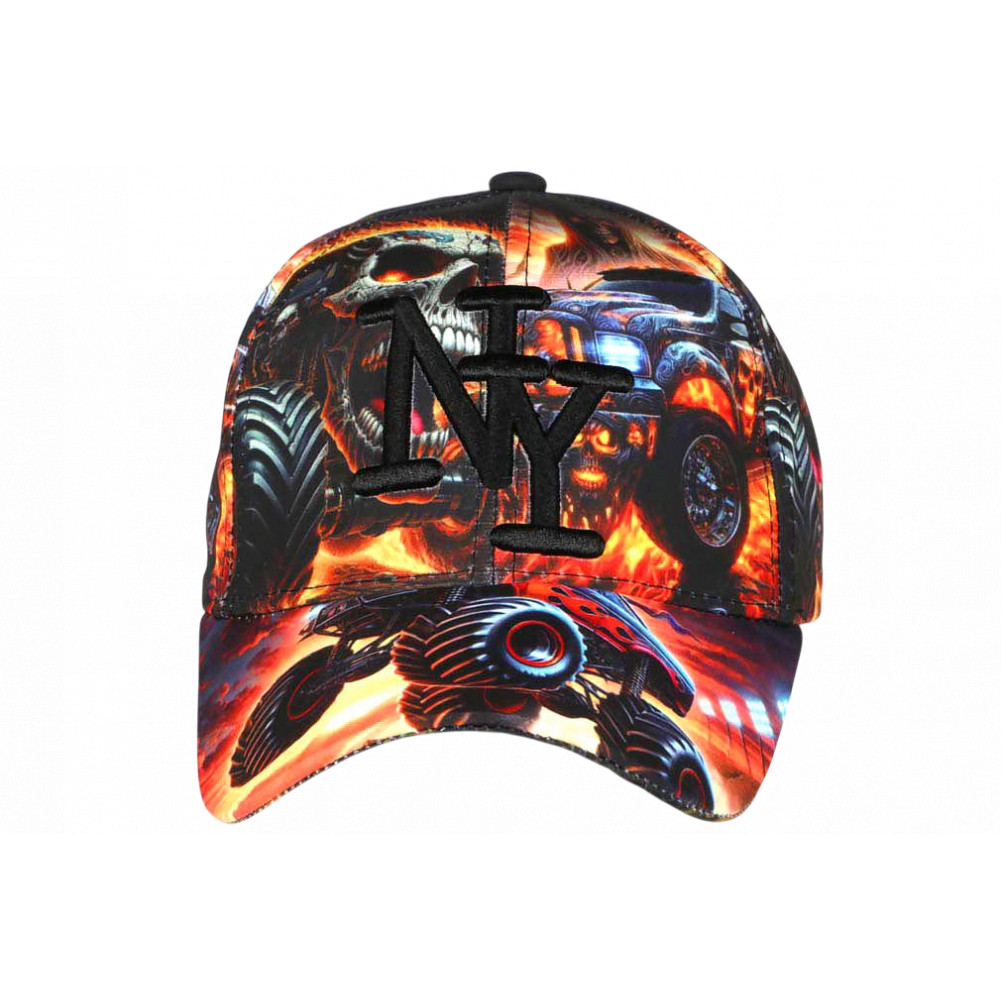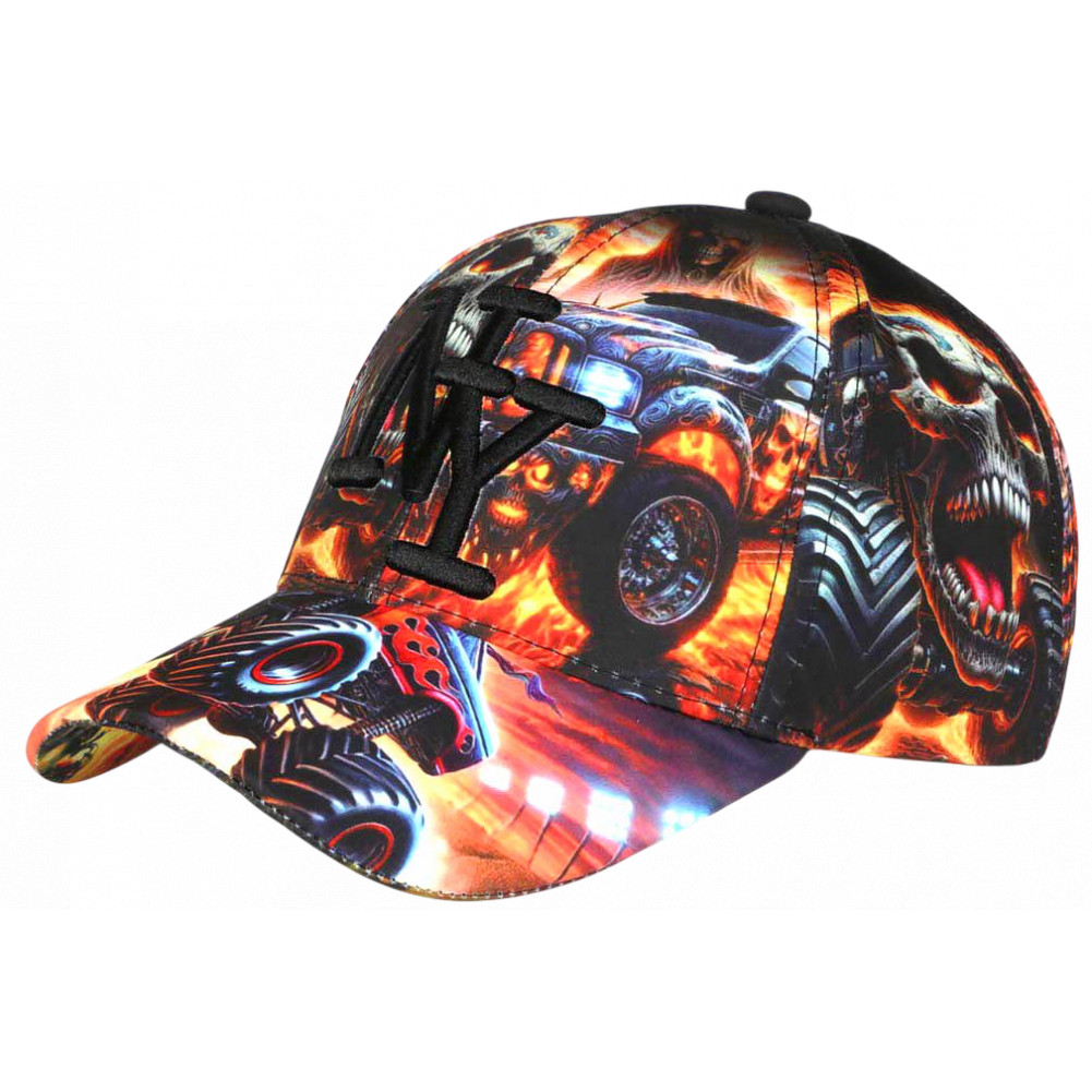 On retrouve ici des intentions de recherche comme casquette NY tête de mort homme femme originale, casquette New York skull streetwear, casquette monster truck design, motif feu urbain, intégrées naturellement dans un univers visuel cohérent.