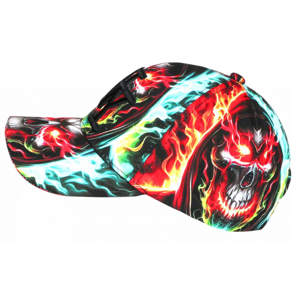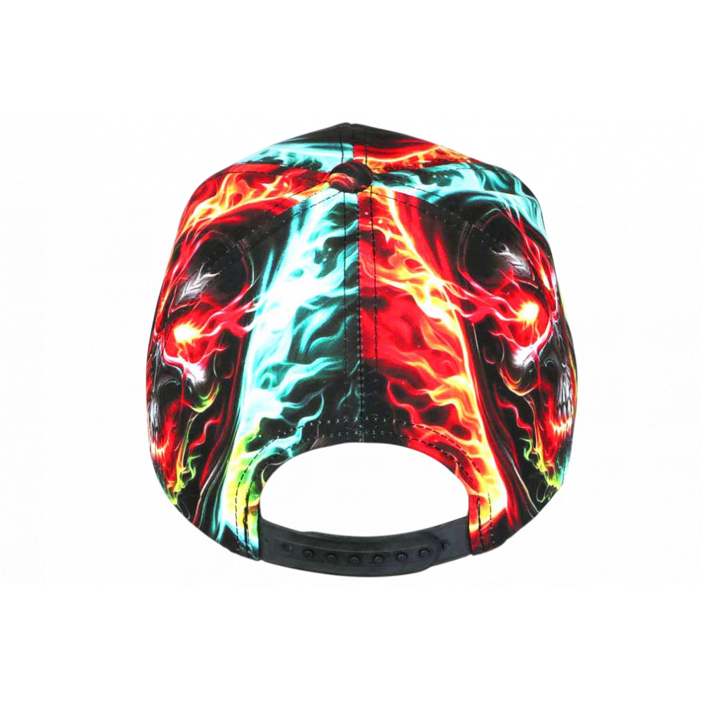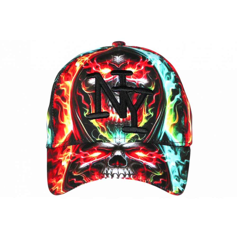 Affirmez votre style avec cette casquette NY tête de mort homme femme aux flammes multicolores. Cette casquette New York streetwear originale associe skull et effets de feu pour un rendu intense. Ajustable et confortable, cette casquette tendance est idéale pour un look urbain moderne. Griffe NY brodée noire en 3D finition prestige.