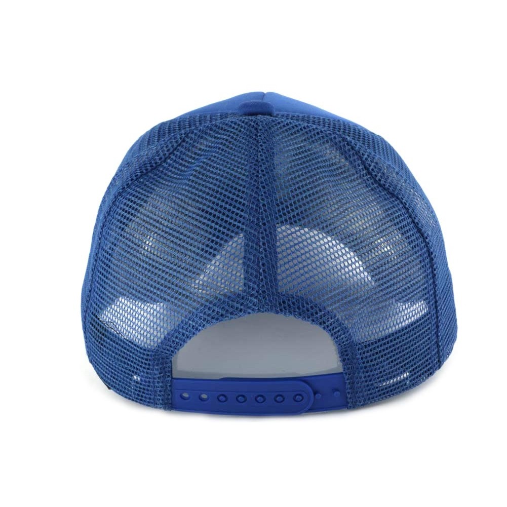 Casquette Trucker de la marque YMCMB, cette casquette est bleu avec une visère baseball, sur le devant on trouve une impréssion du nom de la marque. A l'arrière nous avons l'attache de régalge pour la taille.