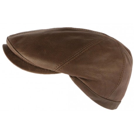 Casquette en cuir homme et femme ligne tendance référence Gatsby collection HG, casquette plate cuir marron confort et souple découpe 6 panneaux, doublure moletonnée noire, confectionnée en Italie.